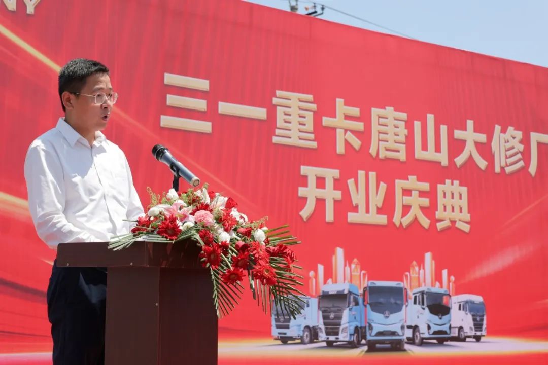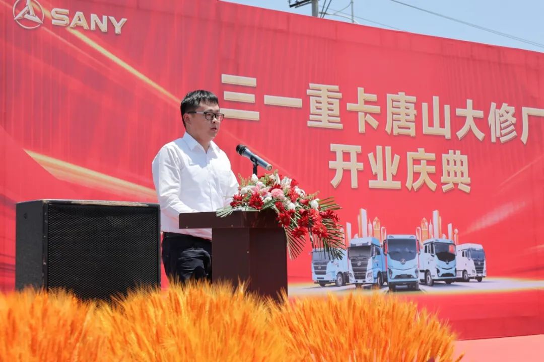 三一重卡华北分公司总经理唐斌先生致欢迎词:唐山,既是“全国新能源汽车换电模式应用试点城市”,也是新能源重卡保有量全国第一的城市。三一重卡全国首家、也是行业首家直营大修厂落址迁西,对于三一直服模式及唐山绿色物流发展都具有深刻意义,将以迁西为中心,辐射至华北各省市,助力该区域绿电交通高质量发展。