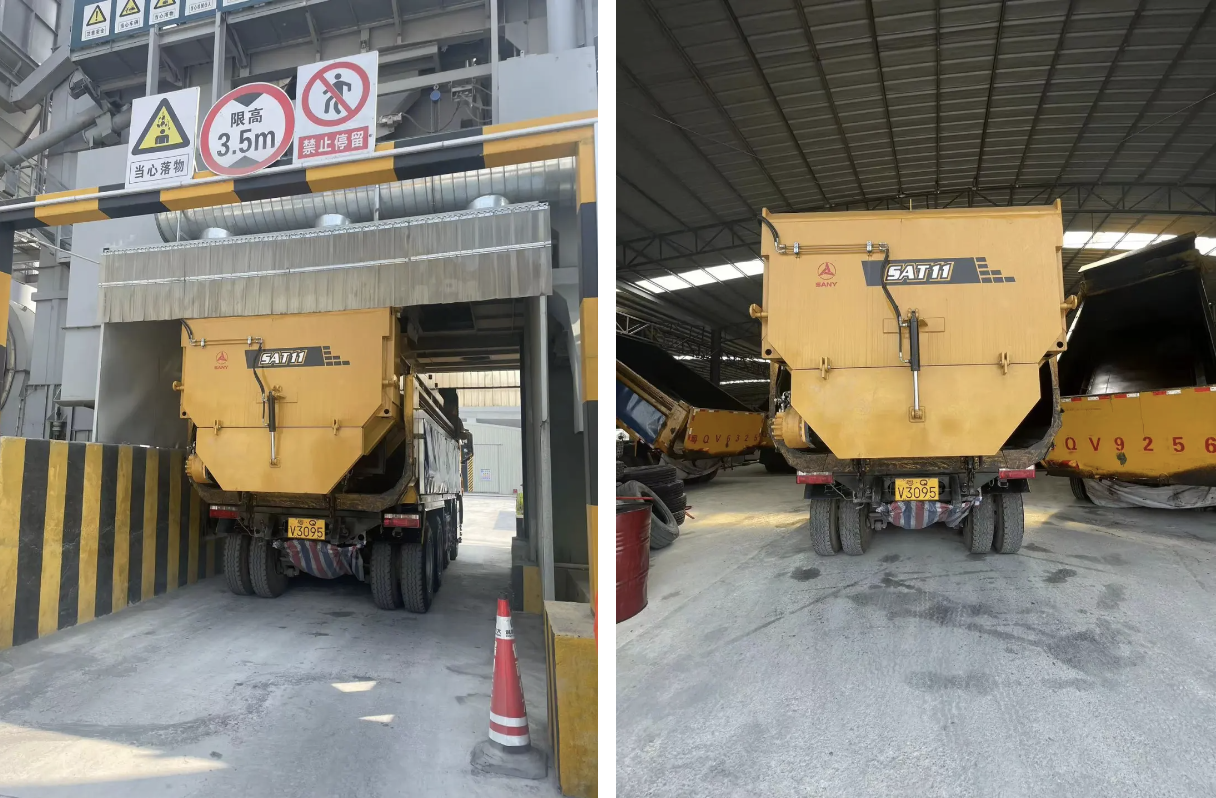 三一与保利长大联合研发的SAT11型沥青混合料运输装置自2023年6月投入深中通道项目使用以来,以高效、精准的运输能力大大提高了施工效率。