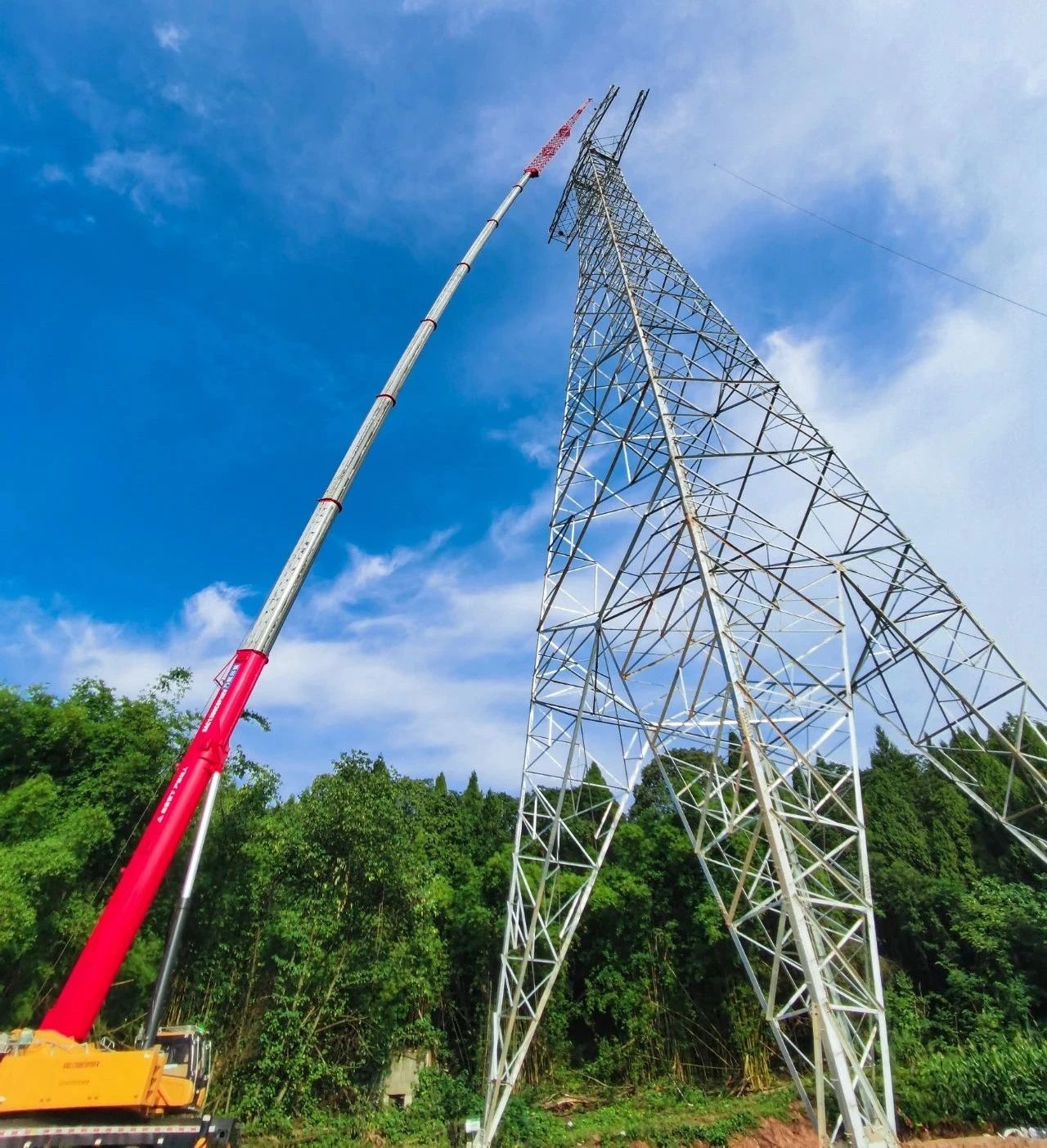 作为我国特高压建设重要省份,四川多条特高压线路、变电站建设活跃,也为吊装市场输入了一股动能。最近,又一全地面新机型SAC800C7-8加入组队,在哈密-重庆800千伏特高压直流输电工程四川段,承担70m高度线塔安装任务。