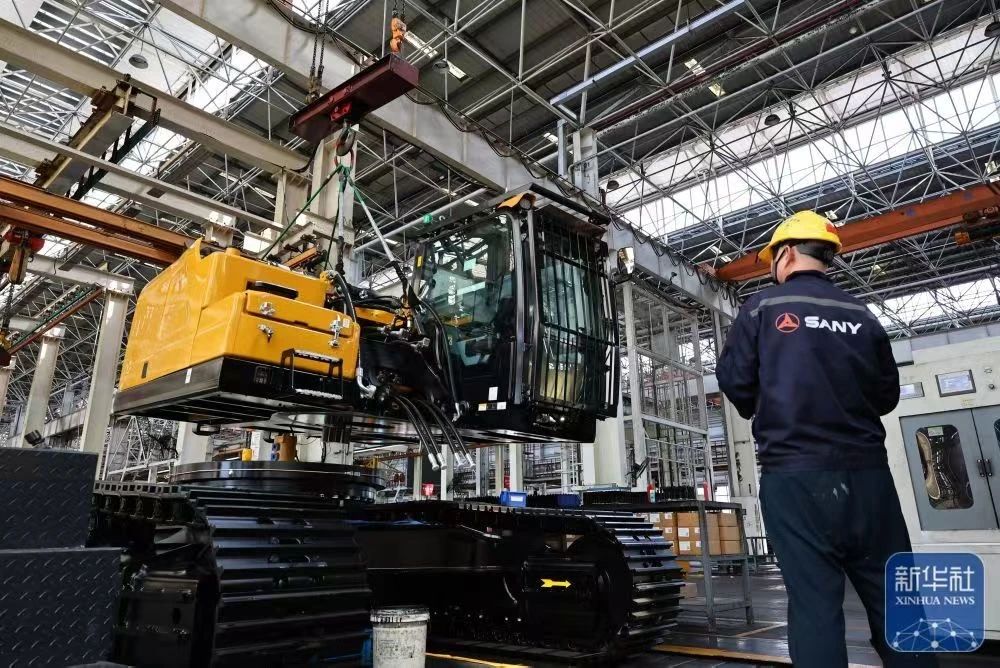 新华社报道:位于上海自贸试验区临港新片区的三一重机生产基地,平均每20分钟就有一台中型挖掘机下线,这一高效生产场景令人瞩目。