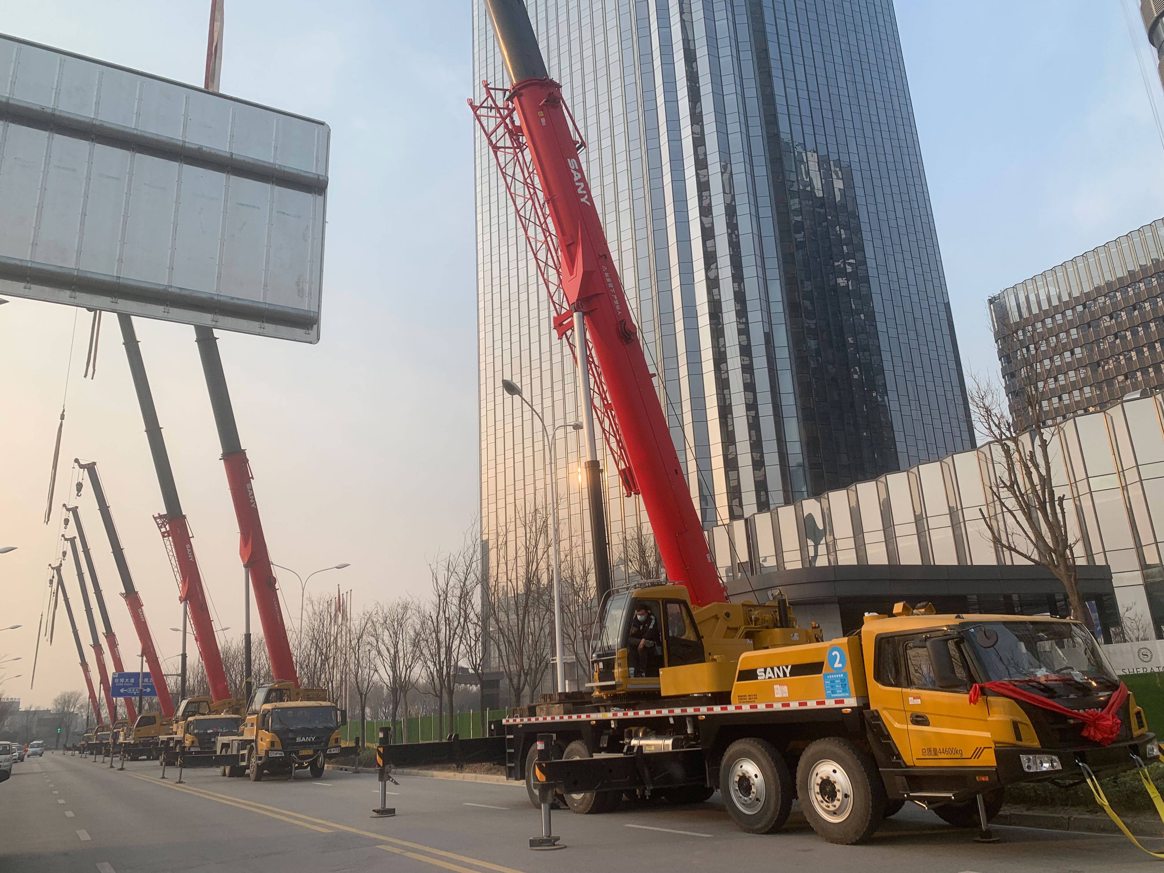 上百台三一起重机分布在雁塔区方舱医院、灞桥港务区方舱医院、杏园北方舱医院等多个施工点,承担集装箱拼装搭建的任务。为保证吊装顺利进行,现场参与作业的吊装人72小时不停机,轮班作业。
