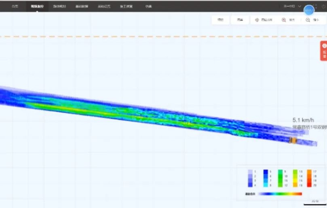 通过采用智能压实技术可以连续采集路面压实参数信息,并将压实数据以色阶图方式呈现,实时指导压路机操作手作业,有效防止欠压及过压,改善路面压实均匀性和压实质量、提升压实效率和延长道路使用寿命。