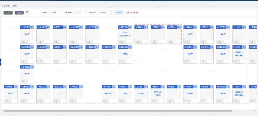 榔梨工厂使用平台进行数字化图纸的解析,对生产工序自动排程,通过制造执行系统完成自动划线、拆/布模、布料、振捣、堆垛、养护、翻转、质检等主要环节。生产线各设备智能互联互通,高效协调运行,实现构件生产节拍≤8min。