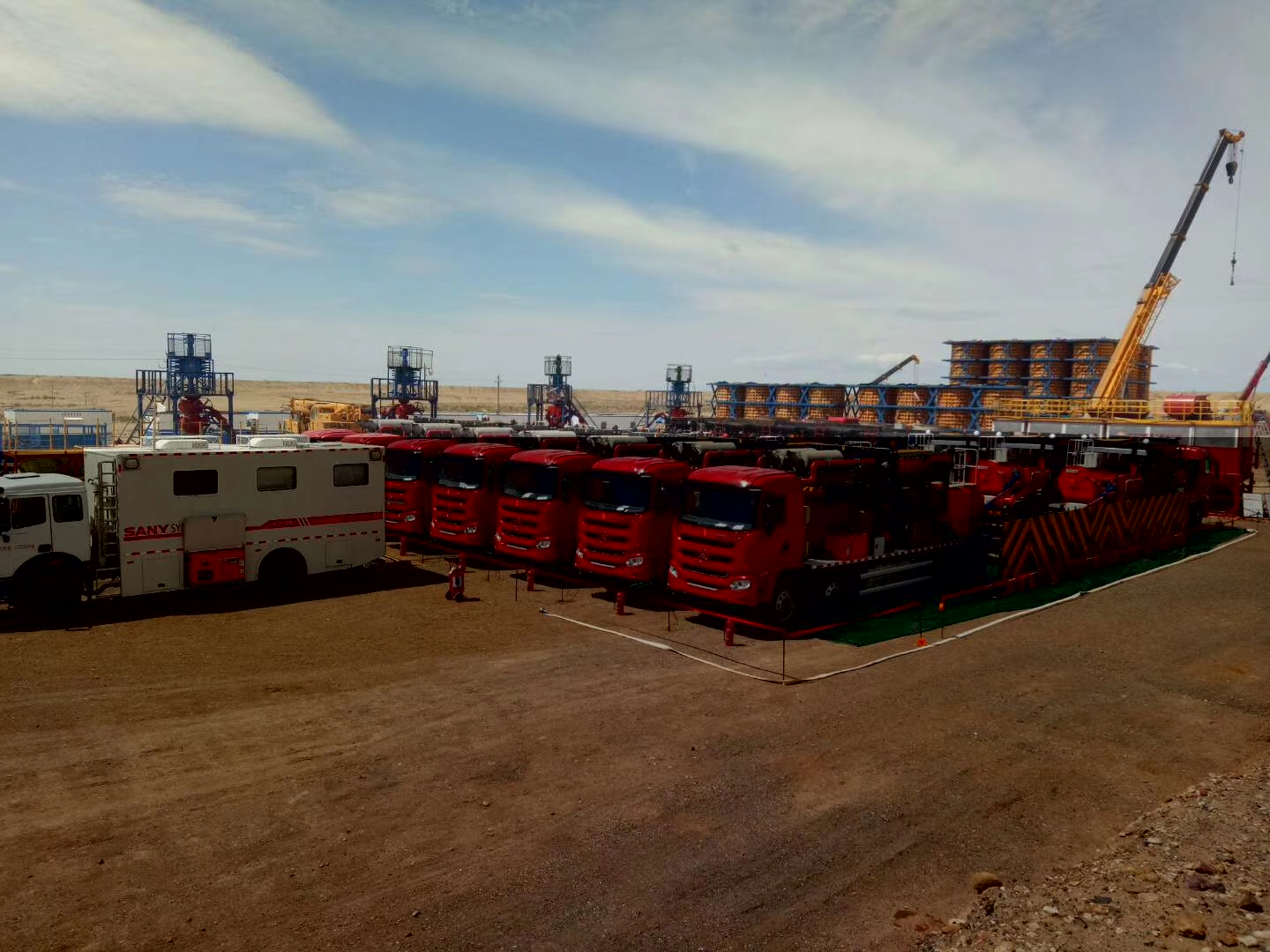三一石油 2500 型压裂车组在低温环境及恶劣工况下未出现故障,历时 18 天,提前完成大井位水平井作业。三一石油2500 型压裂车组赴内蒙乌审旗苏里格气田进行高压大型气井压裂施工,挑战中国最大整装气田中最复杂的“万方液,千方砂”大型压裂施工项目。车组在不停机、不拔泵、不换泵耗品的情况下“停人不停车”,连续作业超过 16 个小时,设备运行稳定,高效。施工期间,砂量输出 400 方,液量 6000 方,排量 6 方,压力 25~ 55Mpa,设备完全满足现场施工技术要求。