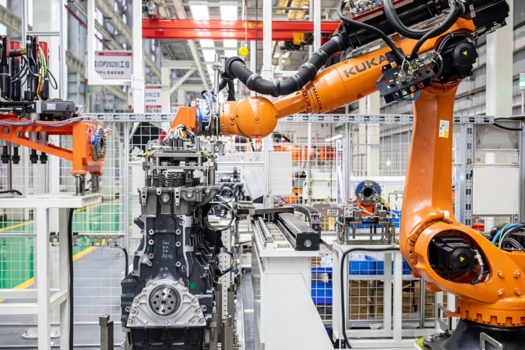 三一道依茨发动机生产线采用智能化、柔性化、信息化技术装备和系统,“上岗”了15台机器人,关键工序自动化率达90%以上,每7分钟就有一台重型机械柴油发动机下线。