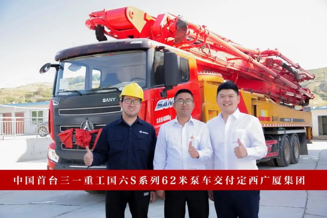 日前,中国首台三一国六 S系列62米泵车,顺利交付甘肃省定西广厦集团。