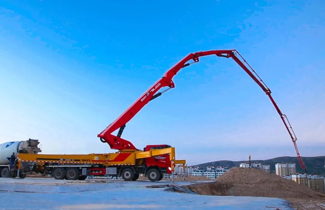三一重工S系列62米泵车,通过升级的泵送系统搭配复合材料、行业最长使用寿命的易损件能够克服机制砂对机体损耗。