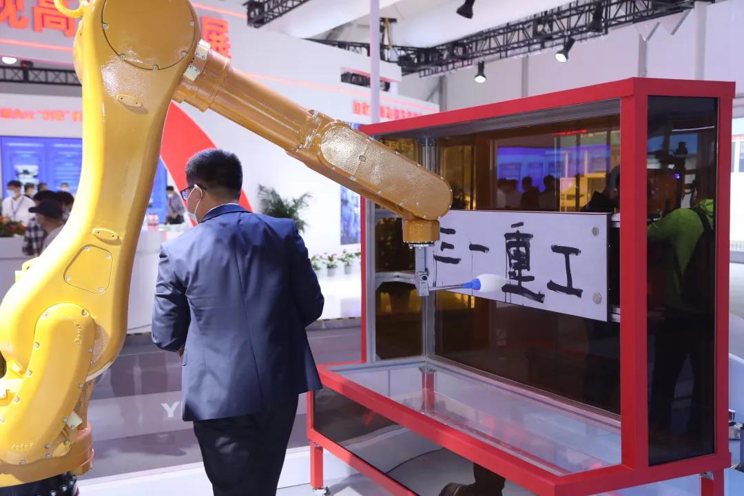 科博会现场,一台会写毛笔字的机器人引起广泛关注。依托传感技术和5G传输等,这台机器人跟随操作者的手势在画卷上写下了“三一重工”四个大字,笔力劲挺,一气呵成,赢得一片掌声。