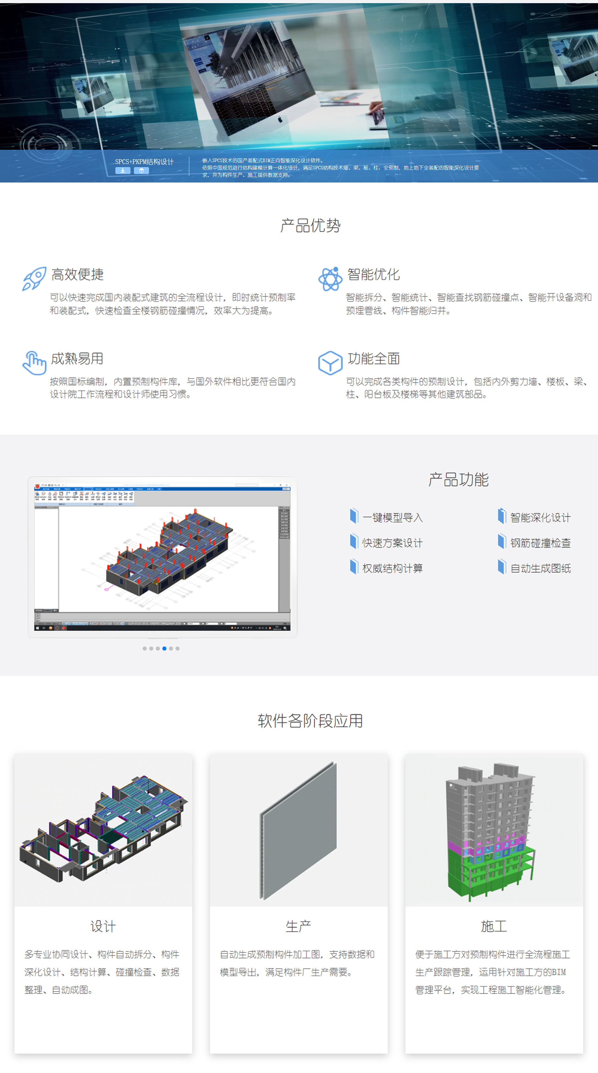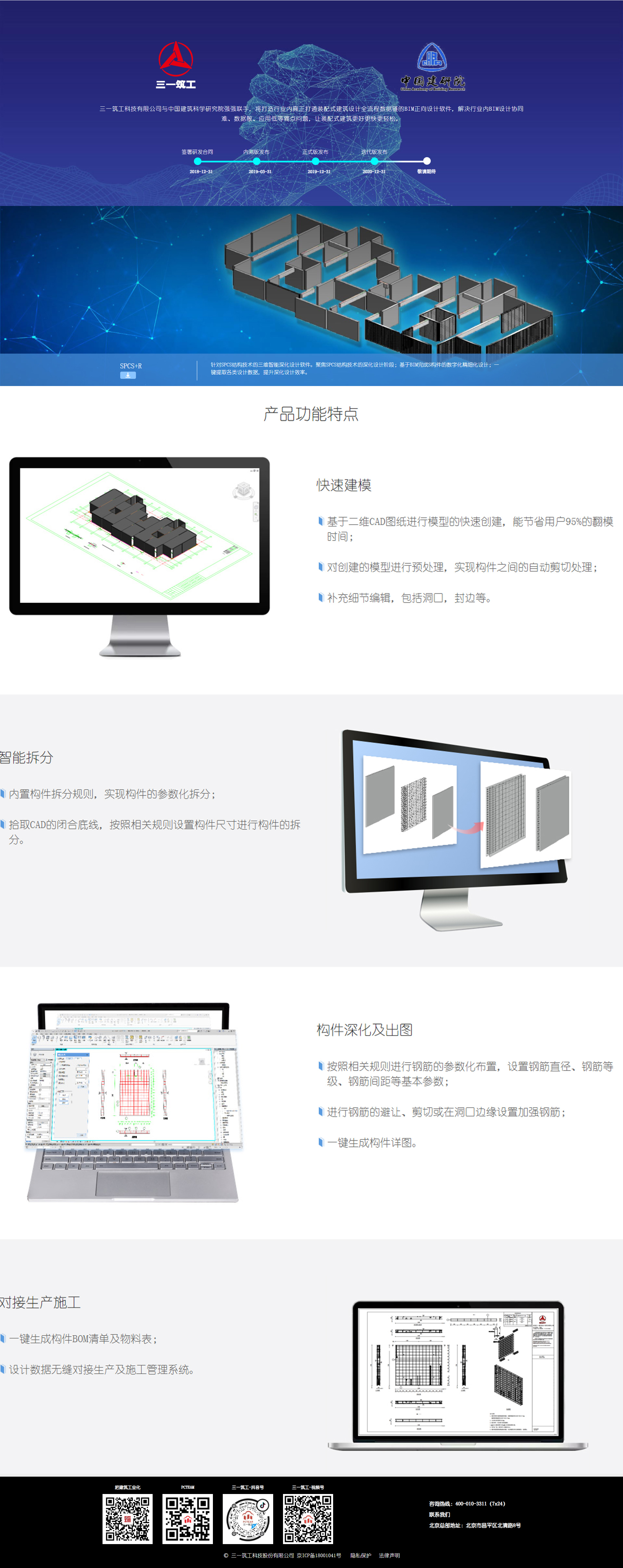 三一筑工P/N/R+SPCS系列智能设计软件,嵌入SPCS结构技术专利,满足墙柱梁板全预制、地上地下全装配的设计要求,实现快速模型创建、自动拆分设计、智能配筋设计、一键输出图纸、BOM清单、模型和加工数据,为构件生产、施工提供数据支持。从而解决行业内BIM设计协同难、数据散、应用低等痛点问题,有效的缩短设计周期、提高设计质量,节约人工成本,让装配式建筑设计更好更快更轻松。