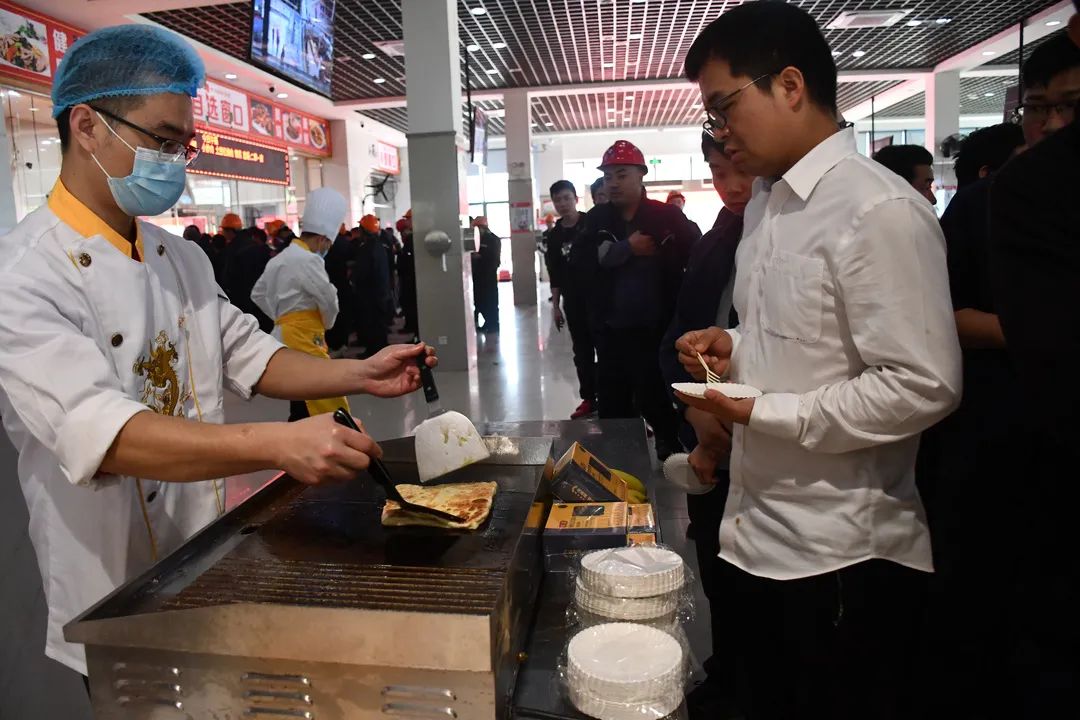醒狮表演后,伏卫忠董事长等公司领导共同切开写着“2022三一海工美食节”的巨型蛋糕,一场关于美食和欢乐的盛宴随即开启。42道中西点心和美味菜肴全部免费吃,满足美食老饕们的味蕾,更有套圈、丢沙包、红包墙等互动游戏,礼品不断、欢乐不断。