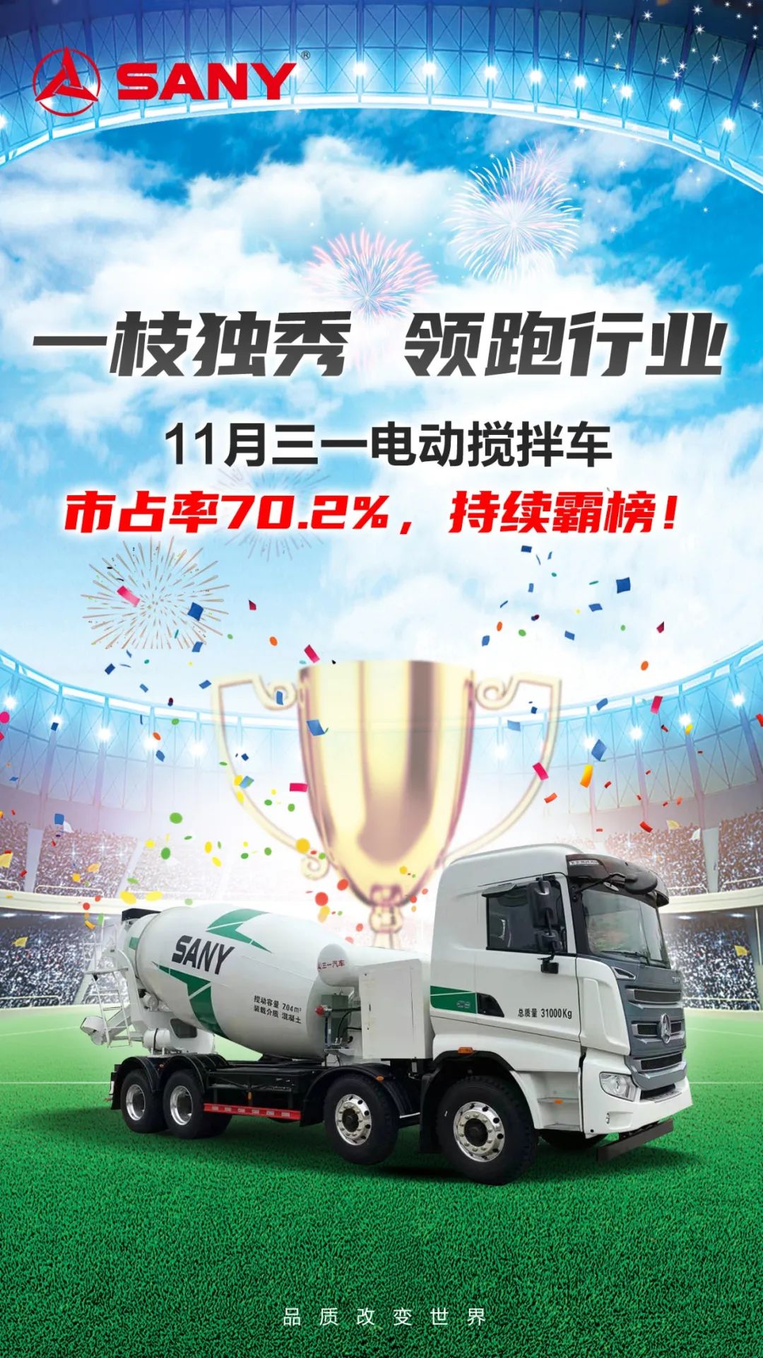 喜报!三一电动搅拌车11月销量持续霸榜!