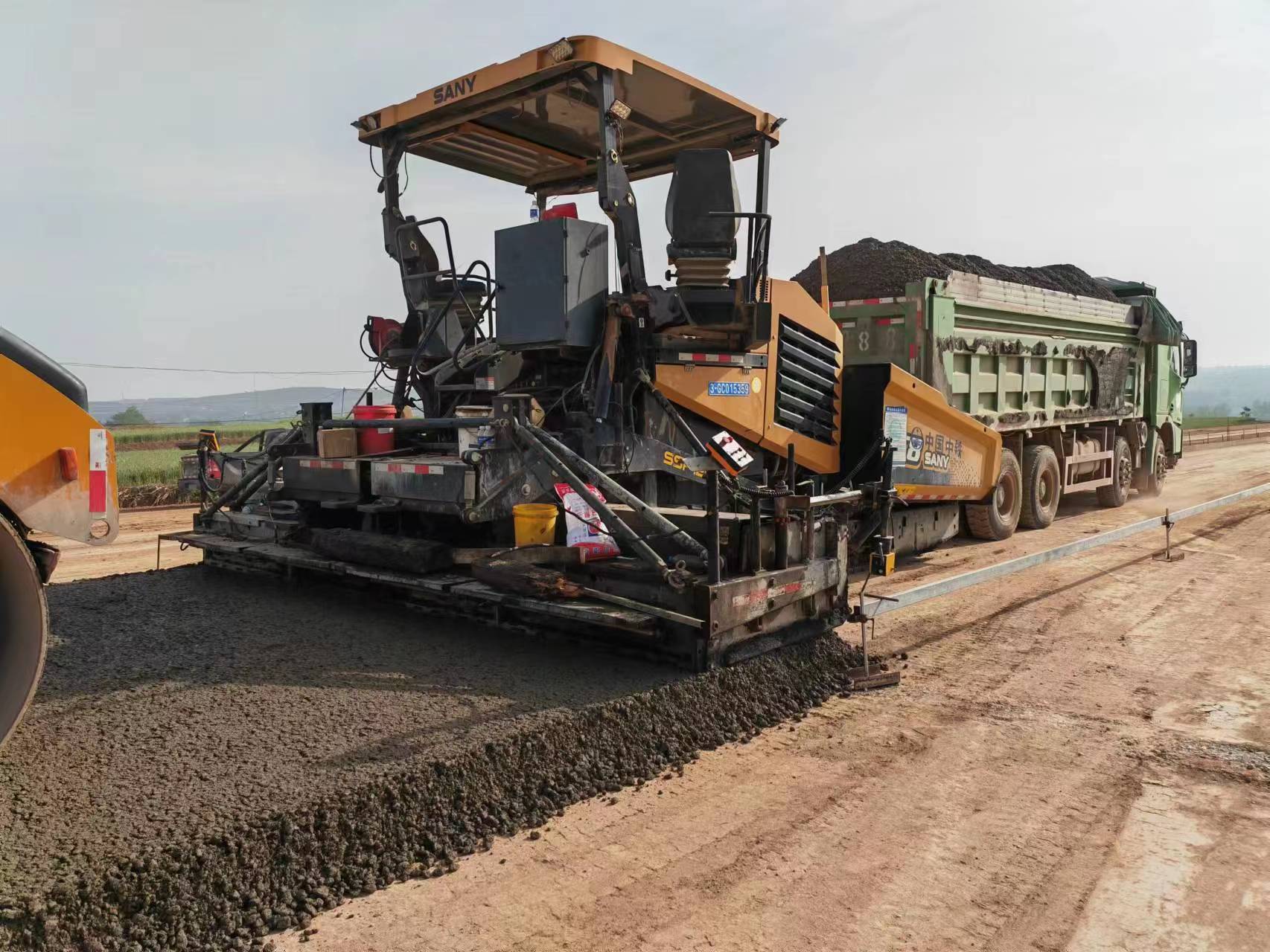 三一路机在该项目第五工区共投入SSP125C-8摊铺机两台、SSP90C-8摊铺机两台、SSR260AC-8压路机两台、STR130C-8双钢轮压路机两台、SPR300C-8胶轮压路机两台、LB4000沥青站等,同时三一起重机、泵车等产品也进入该项目,为三一集团各分公司共同协作探索出了一条金色之道。
