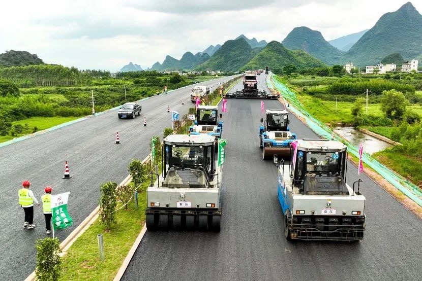 夏日酷暑难耐,无人机群施工不等待!近日,在广西灌阳至平乐高速公路(以下简称“灌平高速”)的施工现场,一抹靓丽的三一“科技蓝”闯入视野,一台台无人摊压设备正在有条不紊的进行沥青路面的摊铺和压实作业。