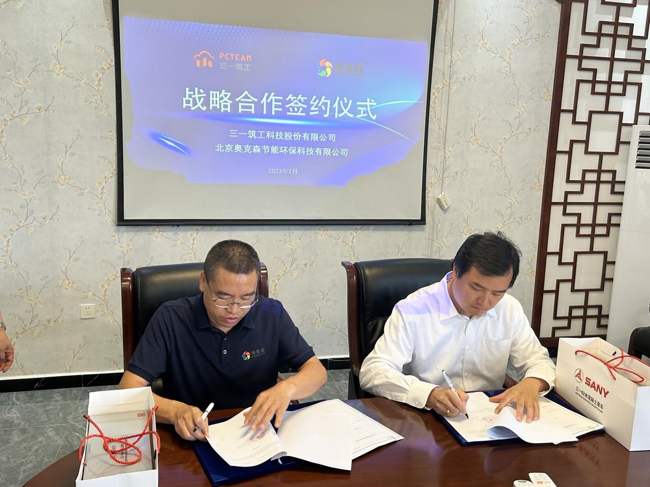 7月18日,三一筑工科技股份有限公司与北京奥克森节能环保科技有限公司举行战略合作签约仪式。三一筑工董事、副总经理徐文浩,北京奥克森节能环保科技有限公司董事长赵宏宇作为双方代表签署协议。三一筑工董事、总工程师马云飞,北京奥克森节能环保科技有限公司渠道中心总经理王志华、营销二中心总经理张伟峰等负责人见证签约。