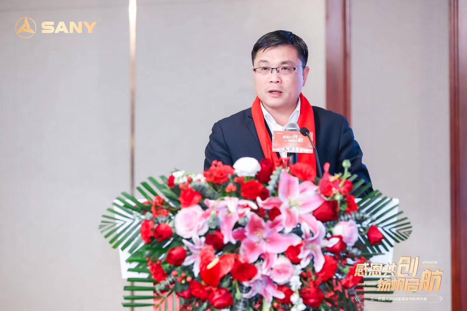 三一集团副总经理、三一机器人科技有限公司董事长郭承志对广大合作伙伴的到来表示热烈的欢迎和衷心的感谢,在过去的2023年,三一叉车能够快速切入市场,赢得众多终端用户和细分市场的认可与信赖,离不开经销商合作伙伴的鼎立支持与帮助。2024年,三一机器人将按照集团“三化”战略部署,坚守产业报国初心,以创新引领发展,加快公司产品服务数智化升级步伐,扎实做好生产经营工作,为经销商合作伙伴赋能,为客户创造更大价值。