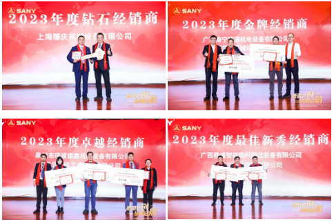 表彰仪式,三一机器人举办了隆重的2023年度优秀经销商表彰仪式,其中上海臻庆机械设备有限公司荣获2023年度钻石经销商并获得一辆售后服务车大奖。仪式过后邀请优秀经销商代表登台分享成功经验。