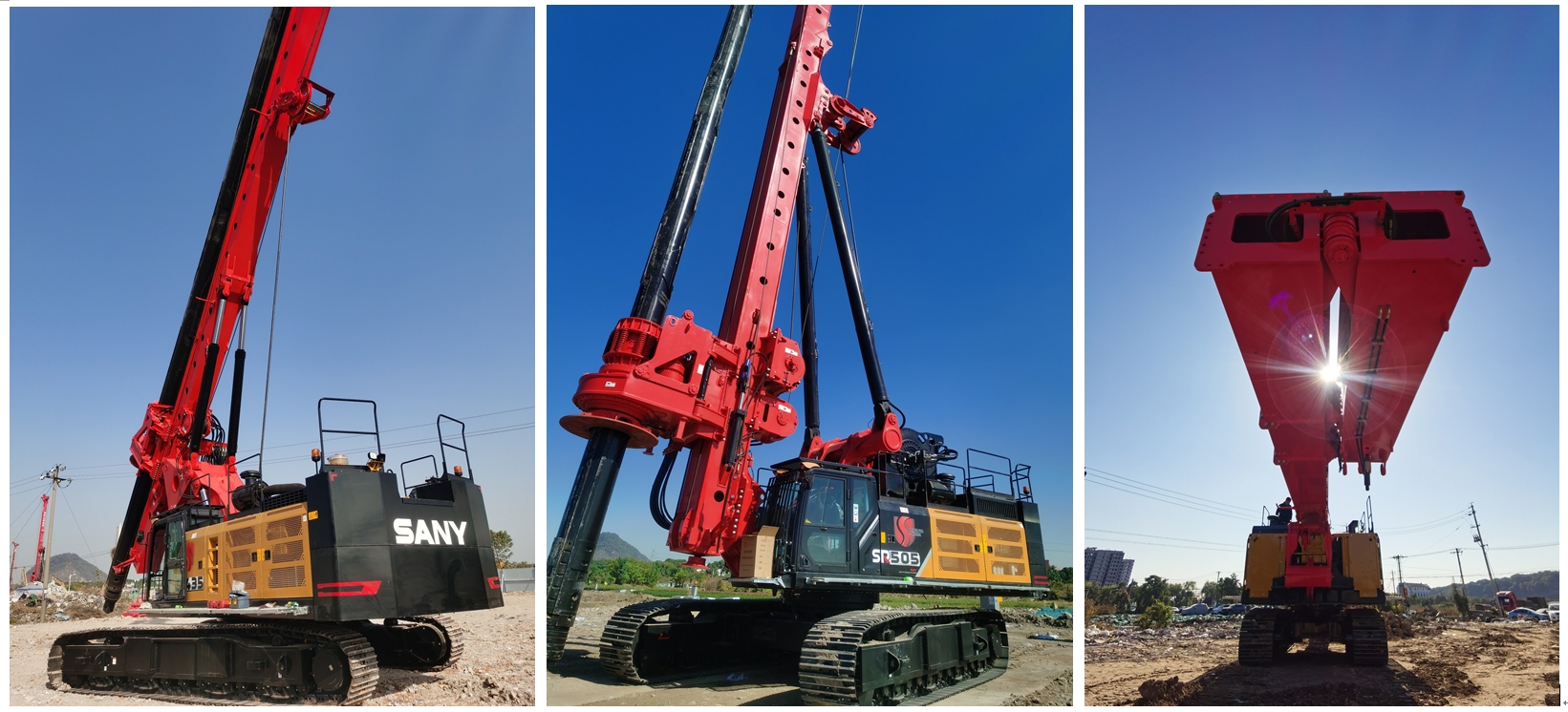 作为主力机型的三一SR505-S、SR435-S旋挖钻机,是一款面向大型建筑、高铁公路等坚硬地层大型桩基础施工的大型旋挖钻机,硬岩钻进能力强,施工能力大。