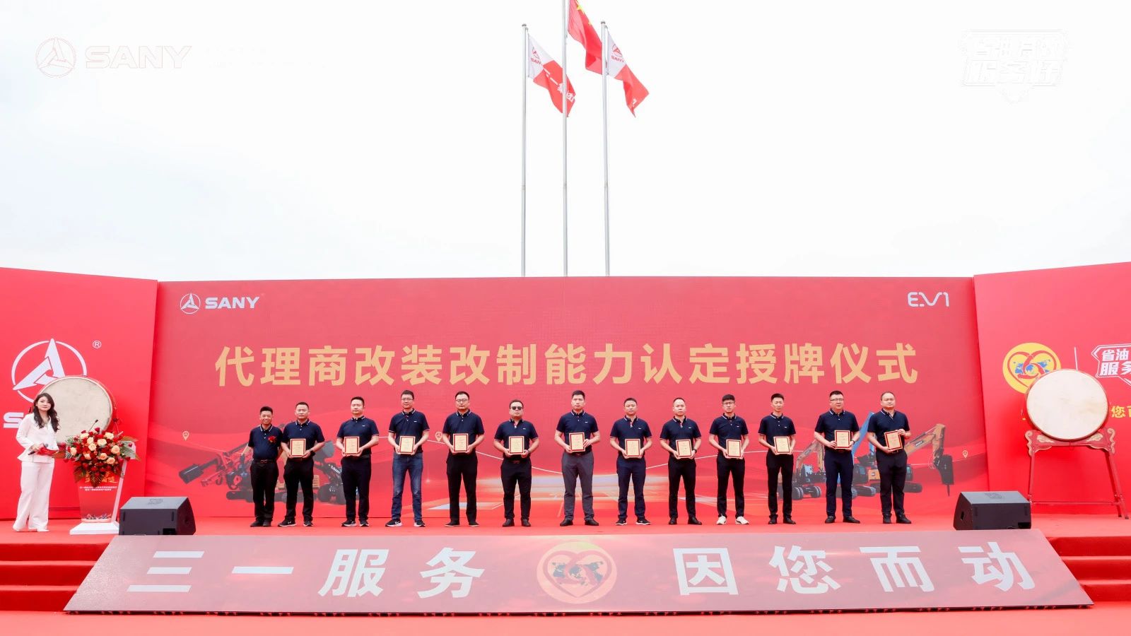 多样化产品发轫之始,秉持“客户第一,质量第一”的理念,三一重机携手代理商伙伴,发起改装改制能力认证热潮,相互赋能,充分发挥优势为多样化产品质量保驾护航,共同推进三一多样化品牌建设。活动现场,三一重机服务支持部部长钟友富先生为代理商代表授牌。