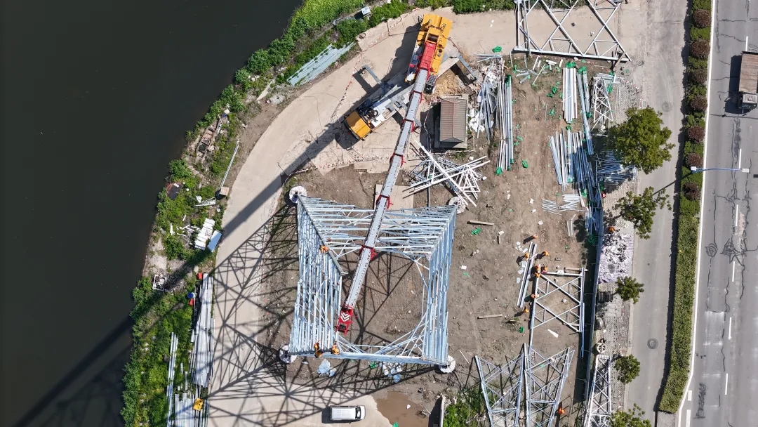 作为三一的老客户,慈溪朱军吊装负责人朱军很关注三一起重机发布的新品设备。在了解STC2000C8-8的性能后,朱总眼前一亮,他认为这款新品200吨很适合做线塔工程,因此毫不犹豫地购入,抢占先机。果然,在提车的第二天就进入工地,主要的吊装任务是,使用79米主臂搭配27吨配重,配合电力施工人员将4吨重的线塔吊至高空组装,工期时长为1个月。