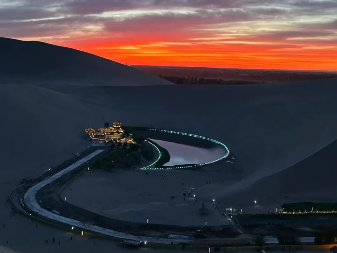不久后,月牙泉景区旁将展现一条宽阔平坦的路面,宛如一条丝带,串联起古今,引领着游客们踏上前往“万人星空演唱会”的旅程。这条新路的诞生,将为游客们提供更加便捷、舒适的体验,能更加轻松地领略敦煌的壮美与文化的底蕴。