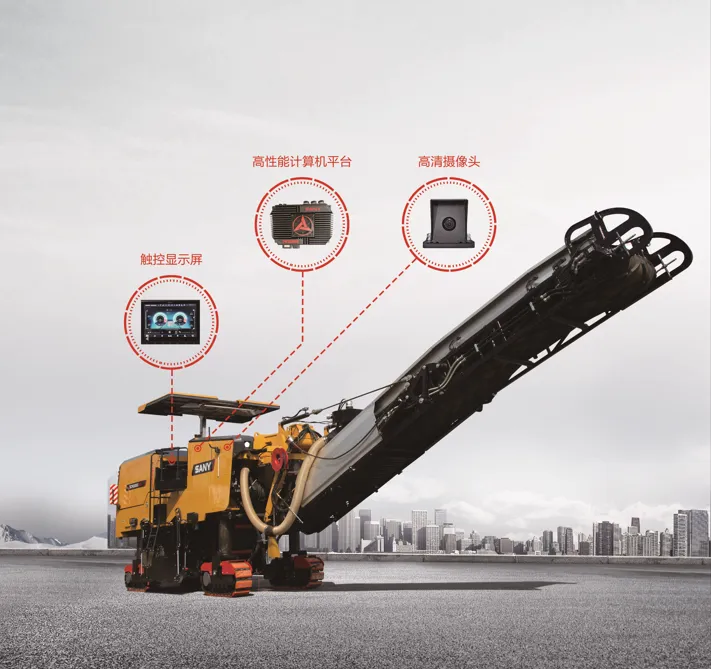 领先的三一铣刨机辅助作业系统,基于视觉的环境智能感知技术,实现铣刨机辅助驾驶、障碍检测报警、铣刨终点提醒三大功能。