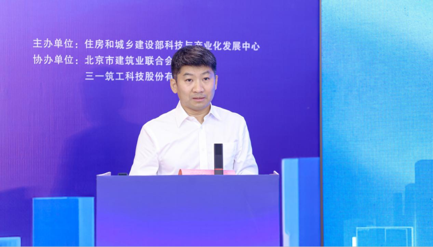 住房和城乡建设部标准定额司副司长白正盛、建筑市场监管司副司长廖玉平,住房和城乡建设部科技与产业化发展中心副主任武振,三一集团总裁助理马云飞出席会议并致辞。浙江省嘉兴市住房和城乡建设局副局长朱斌,北京市住房和城乡建设委员会科技与信息化处副处长张晋波、北京市建筑业联合会副秘书长张奎波等领导和专家参加会议。会议由住房和城乡建设部科技与产业化发展中心产业发展处处长刘美霞、村镇建设与人居环境处副处长赵华主持。
