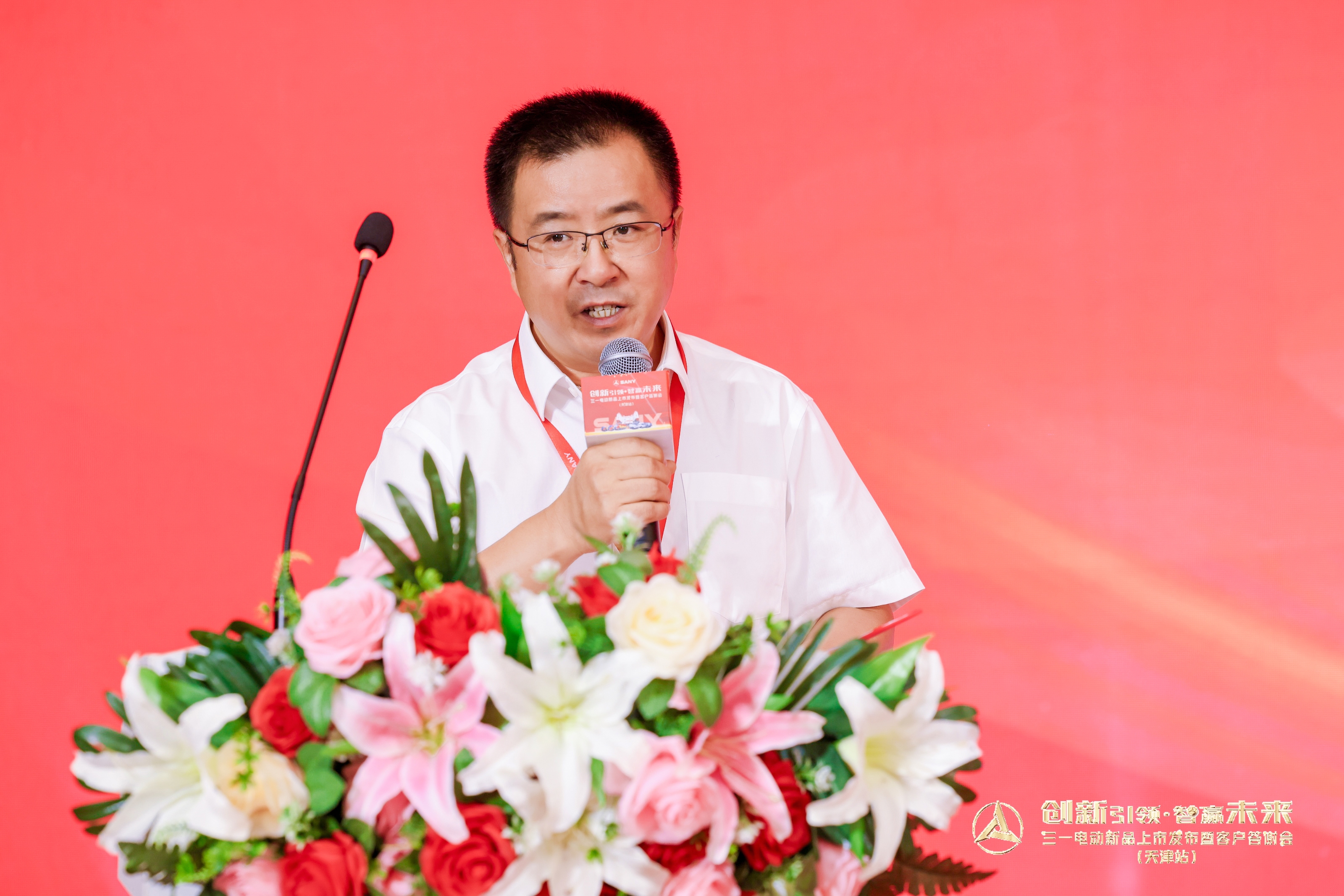 内场环节,天津市混凝土行业协会会长张锋先生表示:“三一在新能源赛道率先发力,取得多项令人瞩目的杰出成就,并以领跑者姿态市场领先,值得信赖。”并向行业发出倡议:“要突破传统思维,积极谋变创新。在国家‘双碳’战略指引下,勇于投入、敢为人先,通过节能降碳、提质降本,全面提升企业技术创新力和市场竞争力。”