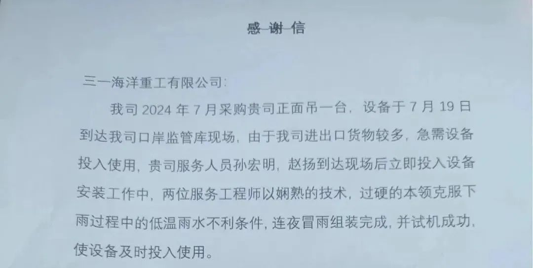 但由于口岸出现货物积压,客户希望设备能提前一天投入使用,“拯救”积压的货物。“提出要求的时候,其实没指望三一会答应,毕竟外边还在下雨,昼夜温差有15℃。”客户说。