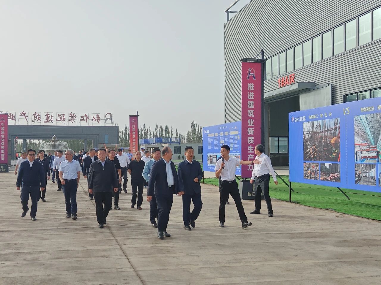 9月25日,第六次全国住房城乡建设系统对口支援新疆工作会议在喀什召开。会议期间,由住房和城乡建设部宋友春司长与新疆维吾尔自治区住房和城乡建设厅李宏斌书记带队,各省市住建局、兵团住建主管部门、区内各地州市住建的主要负责人,共150人考察三一筑工战略合作伙伴新疆弘仁(喀什)装配式建筑产业园。新疆弘仁董事长颜仁将、三一筑工副总经理徐文浩、三一筑工研究院副院长许圣洁为考察团详细介绍SPCS智能建造体系及核心技术、智能建造数字化平台和智能装备,展示了相关的产品样板间,展现了三一筑工“方案 · 平台 · 硬科技”的全方位能力。