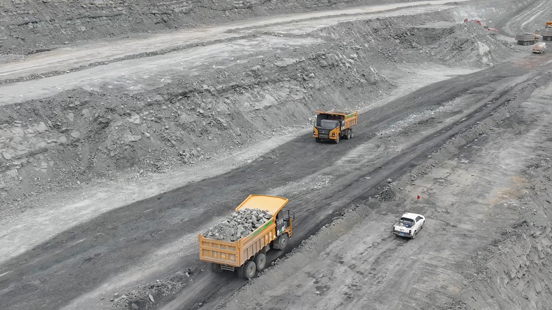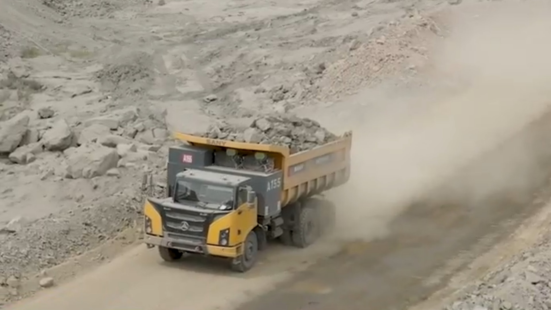 新疆三道岭煤矿是新疆维吾尔自治区的国有重点煤矿区,位于哈密地区,天山褶皱带的南缘,哈密盆地的西北边缘。该矿区拉运工况以运输土方石为主,沙石土路,运距0.8-2.3公里,多为重载上坡,日工作近20小时,对纯电宽体车的性能是一个巨大的考验。