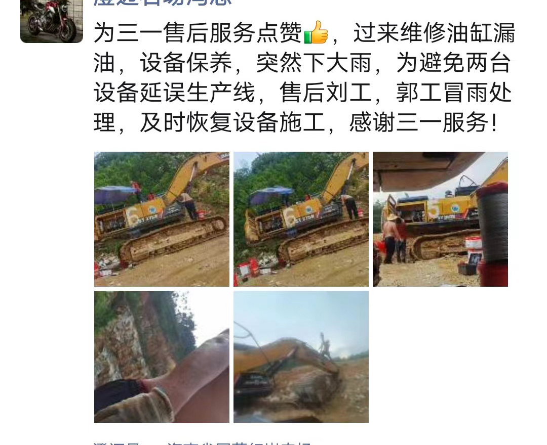 经过工程师们坚持不懈地努力,设备恢复了正常工作。客户被这两位工程师的专业与敬业深深打动,在微信朋友圈中表达了真挚的感谢与敬意,这不仅是对三一服务的高度认可,更是对三一品牌的信任。