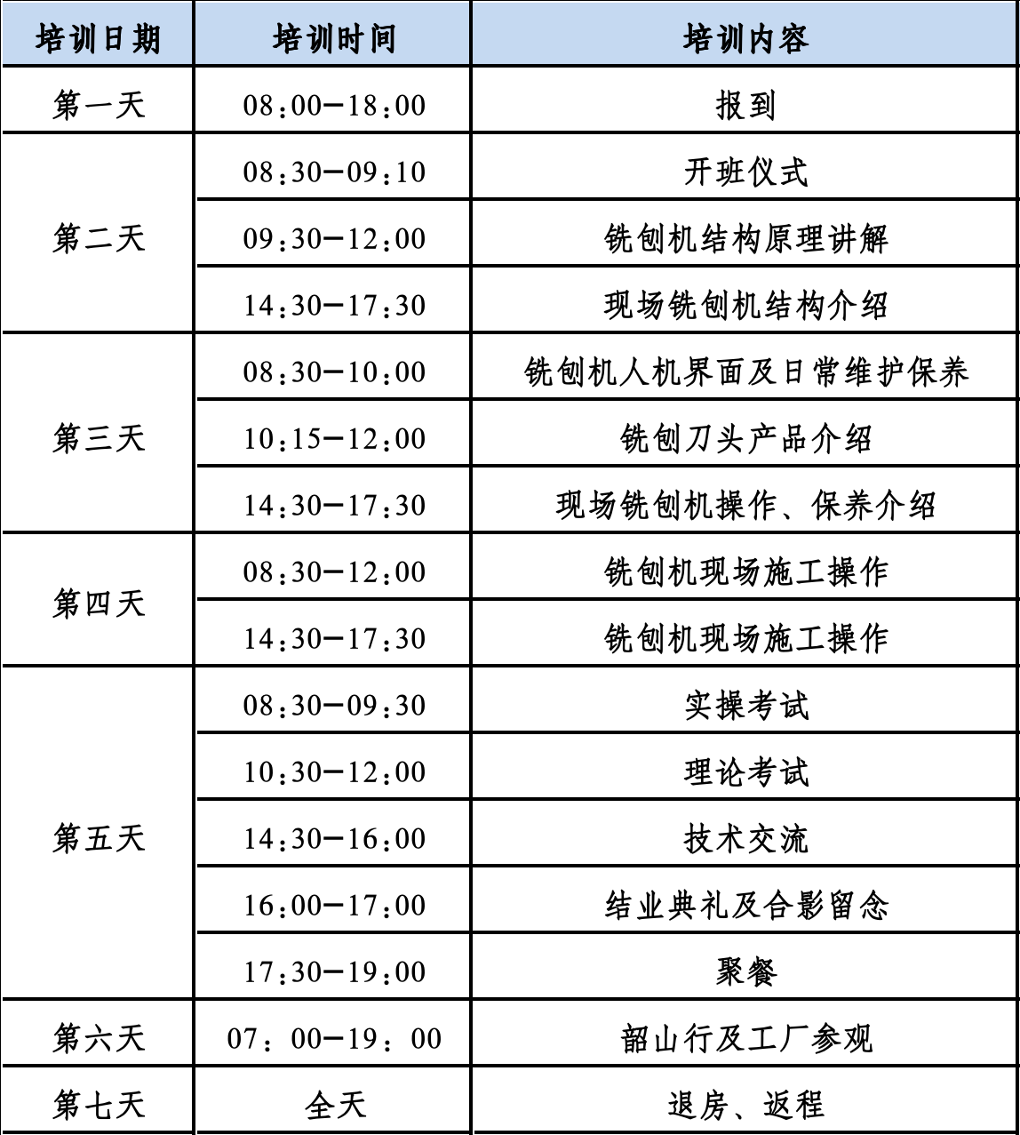 铣刨机客户培训,线下培训6天,费用3180元/人