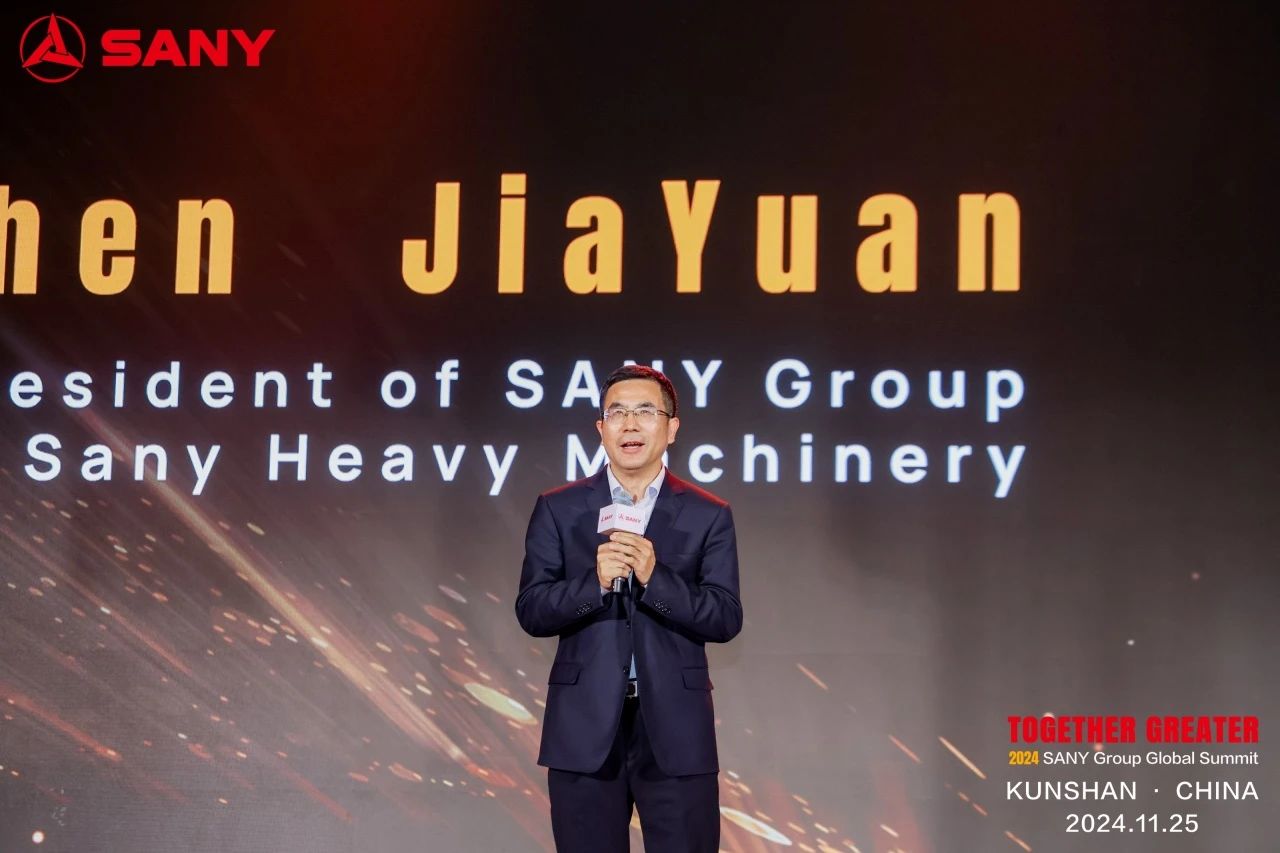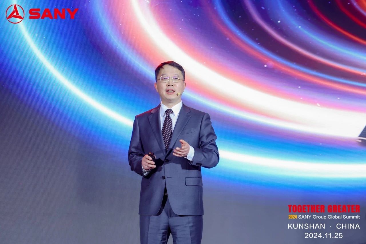 三一集团副总裁、海外直营事业部董事长李沁对远道而来的全球客人表示热烈欢迎与诚挚感谢,并围绕三一的三大商业板块、三大竞争优势、三大战略:全球化、数智化、低碳化,发表了“Together, Greater”主旨演讲。