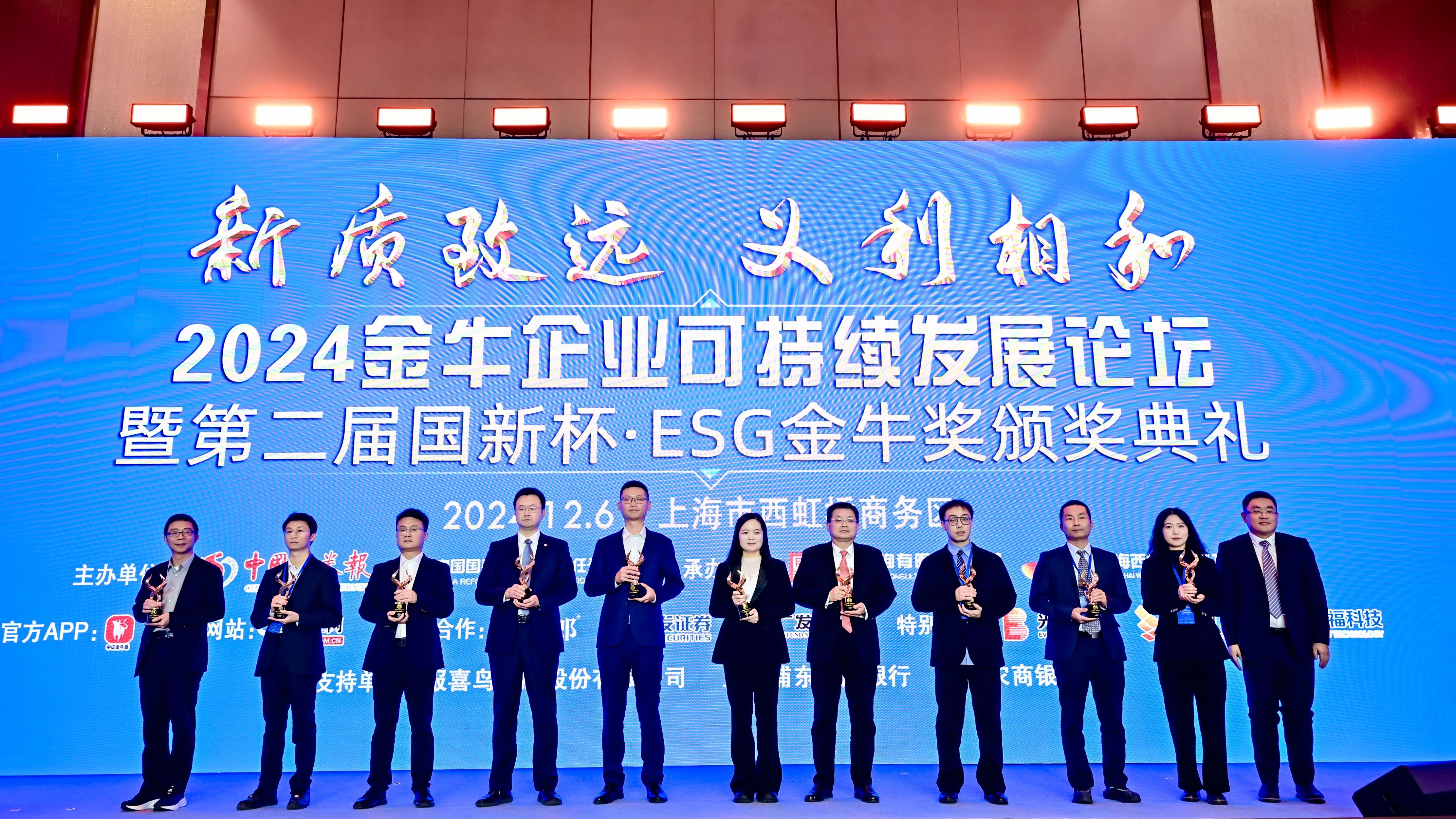 近日,由中国证券报和中国国新控股有限责任公司联合主办的2024金牛企业可持续发展论坛暨第二届国新杯·ESG金牛奖颁奖典礼在上海举行。