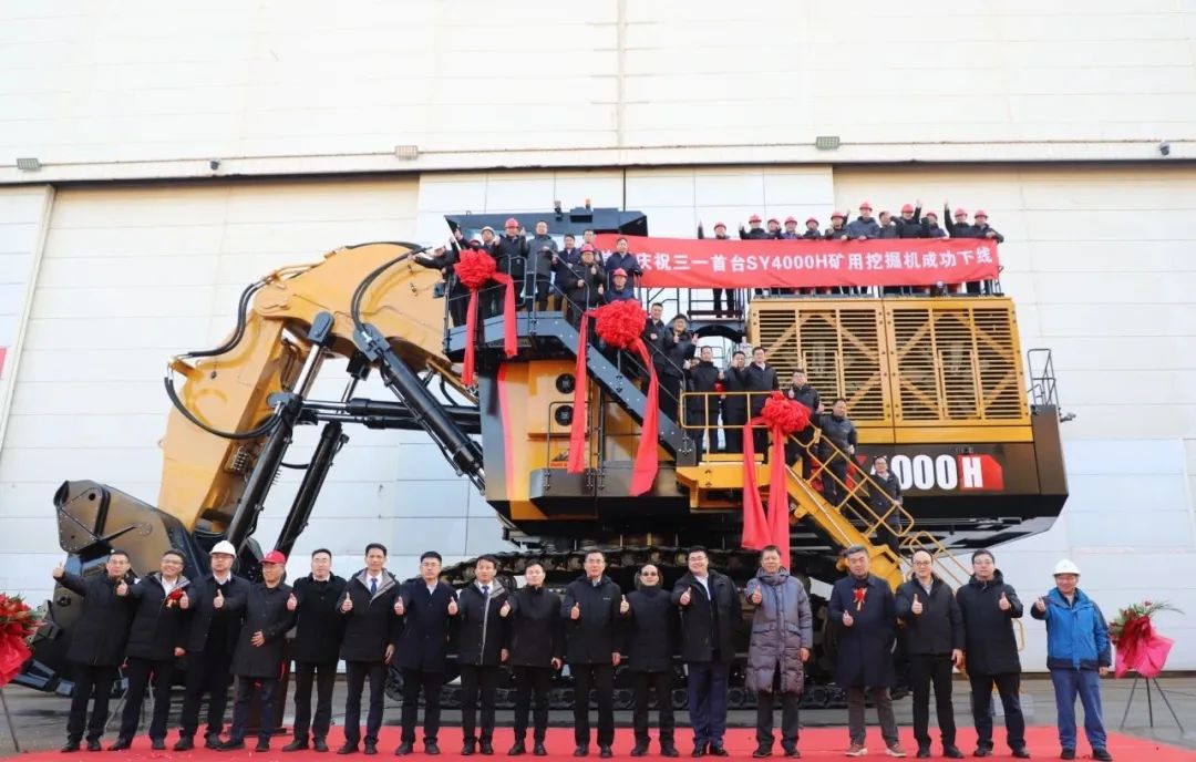 2024年12月20日,三一首台400吨矿用正铲液压挖掘机SY4000H在三一昆山产业园隆重下线,成功填补三一超大吨位型谱空白。SY4000H汇聚了业内顶尖的研发团队,突破了13项行业关键技术,拥有20余项核心专利,在系统压力、挖掘力、挖掘速度、发动机功率及流量等方面均在同级别中表现卓越。
