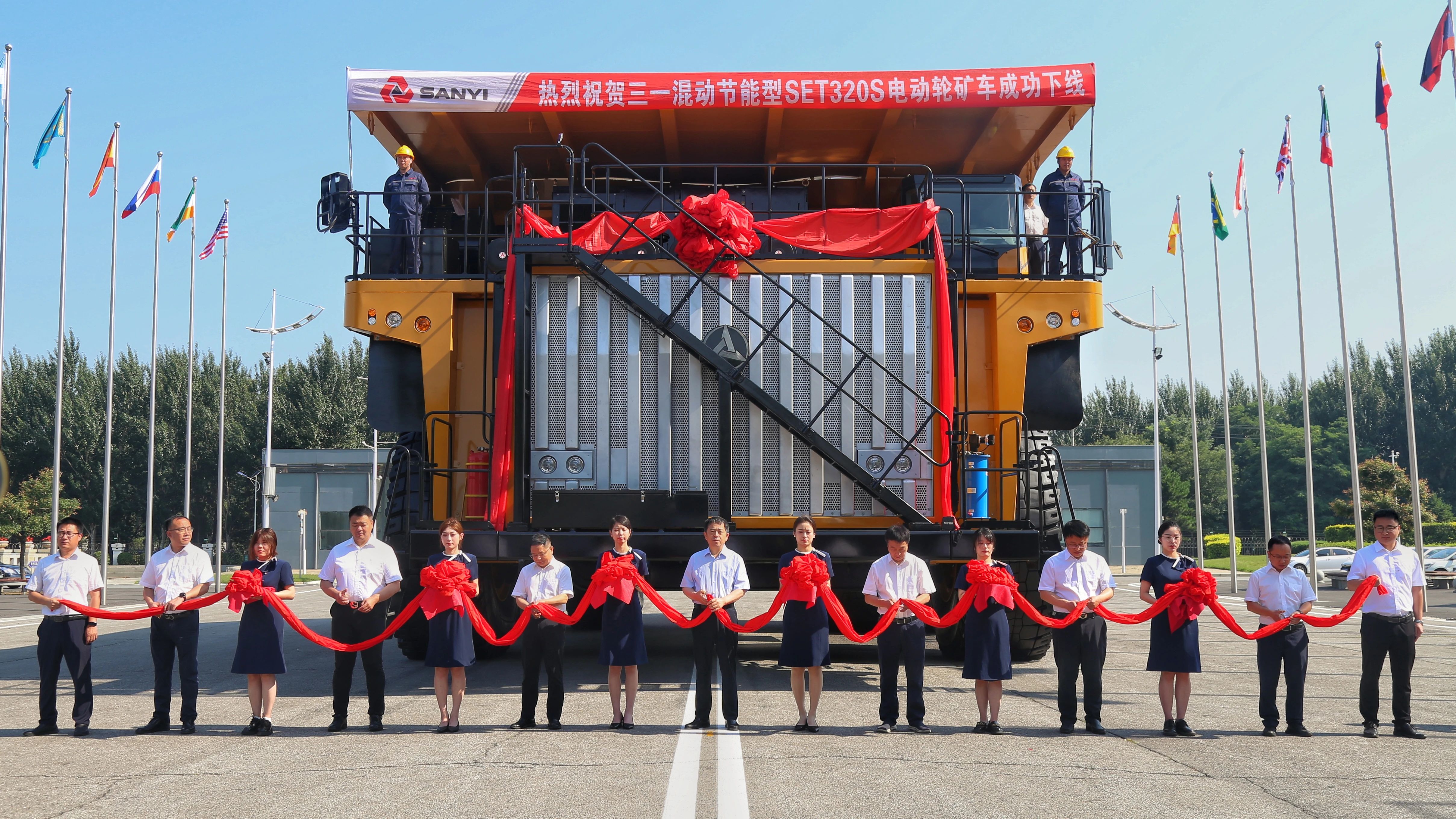 2024年7月10日,三一混动节能型SET320S电动轮矿车在三一重装沈阳产业园正式下线验收。SET320S是一款载重300吨级的混动节能型电动轮矿车,也是三一目前研发的最大载重吨位矿车,可以满足国内外露天矿山各种工况的使用需求。
