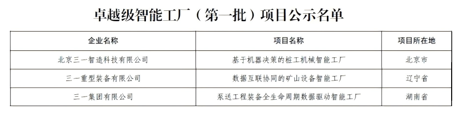 近日,工业和信息化部第一批卓越级智能工厂名单结束公示,三一以卓越的智能制造表现脱颖而出,旗下3家工厂成功入选,数量为行业第一,为产业转型升级树立了全国领先示范标杆。
