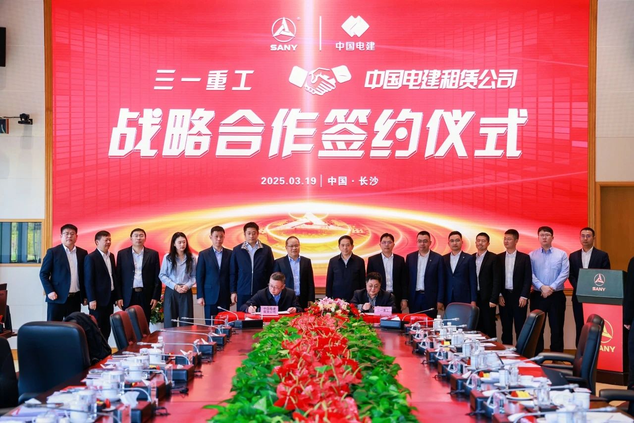 在双方见证下,三一集团副总经理周涤非与电建租赁公司副总经理白巍代表双方签署《战略合作协议》。