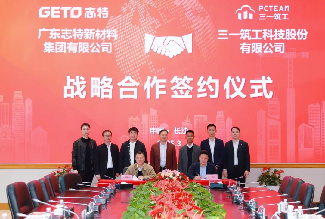 3月18日,三一筑工科技股份有限公司(以下简称“三一筑工”)与广东志特新材料集团有限公司(以下简称“志特集团”)在长沙三一集团总部签署战略合作协议。双方以“共筑智能建造新生态”为愿景,围绕装配式建筑领域的深度协同达成全方位战略合作。三一集团轮值董事长、总裁唐修国出席接待,志特集团董事长高源,三一集团高级副总经理、三一筑工总经理程伟华携双方核心团队出席并见证了签约仪式。