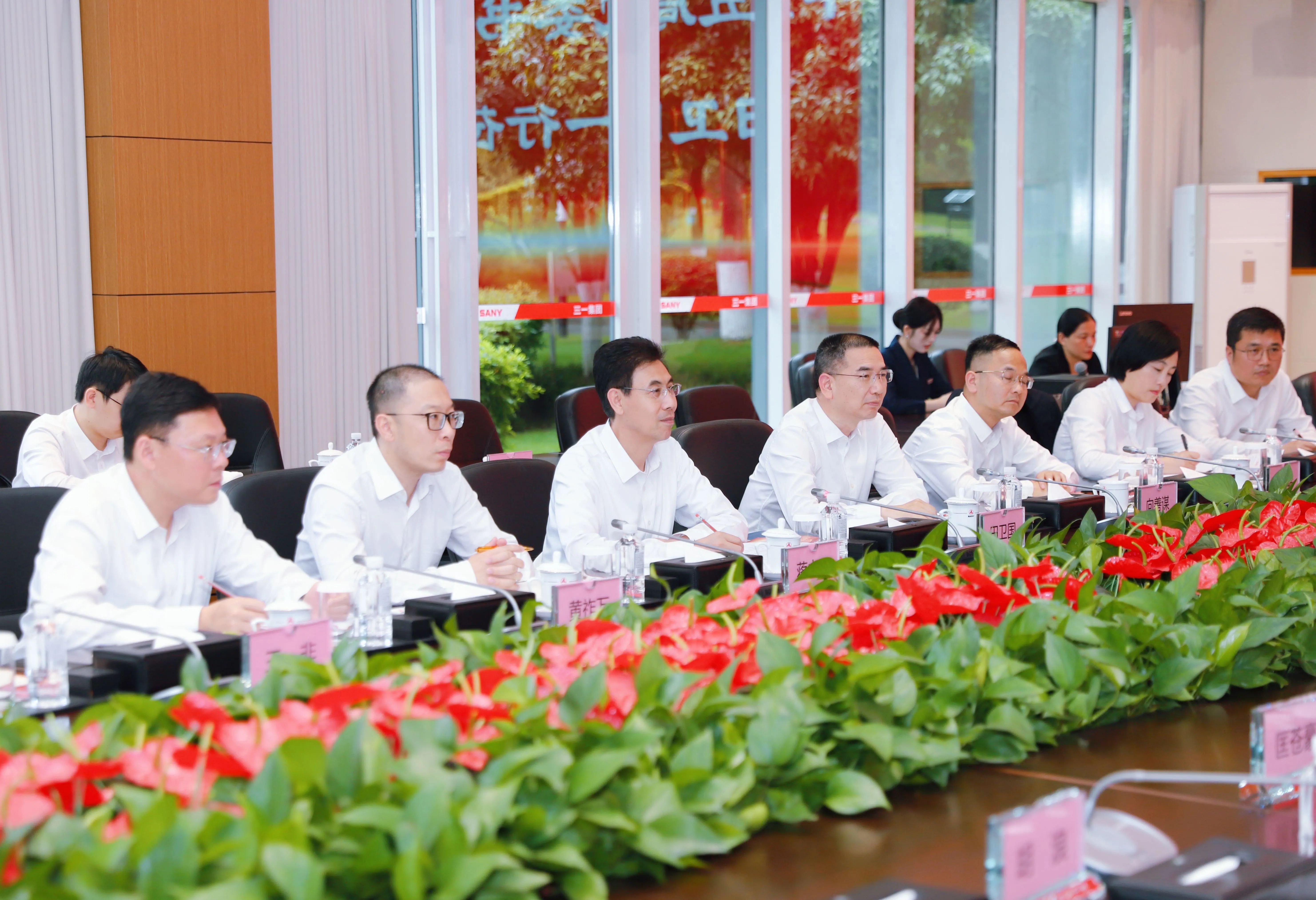 向文波对田卫国一行的到访表示热烈欢迎,并介绍了三一集团的经营现状与“全球化、数智化、低碳化”转型实践。向文波表示,身处中华民族伟大复兴的中国梦和第四次工业革命叠加第三次能源革命的超级技术窗口,三一集团正全力推进第三次创业新征程,致力于成为智能制造、国际化与高质量发展的典范。