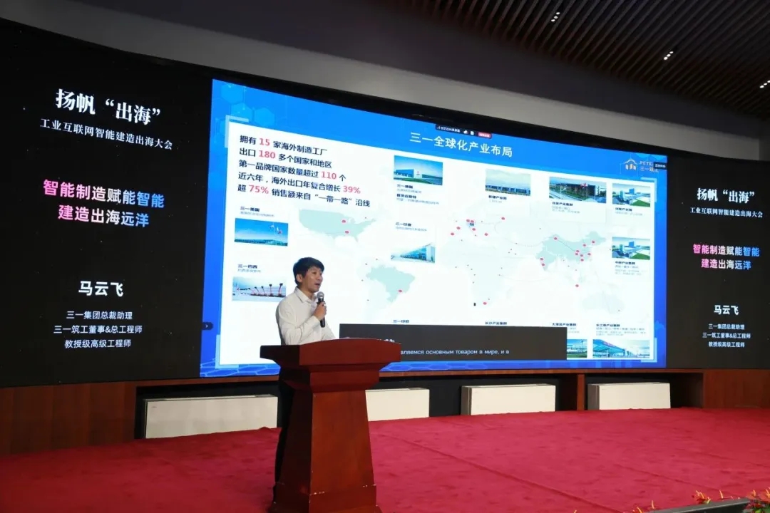 近日,2025工业互联网智能建造出海大会暨中海协工业互联网智能建造专委会成立仪式在北京召开。大会由中国产业海外发展协会(简称“中海协”)主办,中海协工业互联网智能建造专委会、北京建谊投资发展(集团)有限公司、铯镨科技有限公司承办,中国国际工程咨询协会、工业互联网产业联盟建筑行业组、白俄罗斯国家设计研究院协办。中南建筑设计院、三一集团等企业相关领导参加会议。大会以“扬帆出海·共绘全球工业互联网合作新蓝图”为主题,汇聚全球政商精英、行业领袖,共探“中国建造”国际化升级路径。三一集团总裁助理、三一筑工总工程师马云飞发表主题演讲《智能制造赋能智能建造出海远洋》,系统阐述三一以智能制造为引擎,推动中国建造技术全球落地的战略实践与愿景。