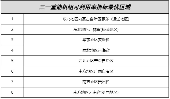 在机组可利用率指标最优主机商名单中,共有22家海内外风电整机商上榜,三一重能凭借在全国八大区域机组可利用率排名第一的卓越表现,拔得头筹。从大漠戈壁到黄海之滨,从冰雪之城到云贵山地,无论身处何地,三一重能风电机组的可靠性始终如一。