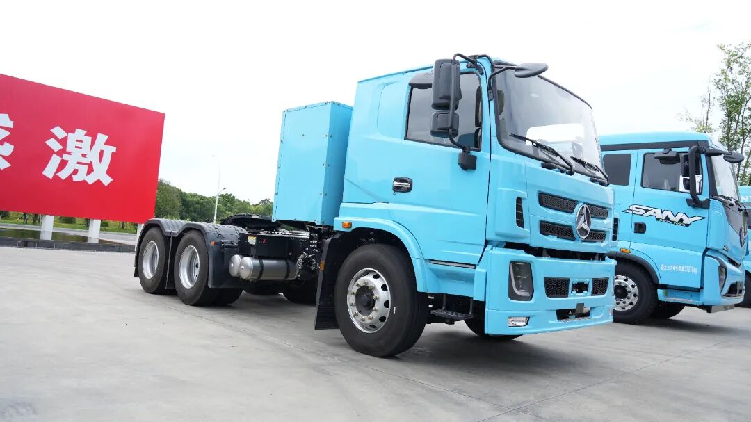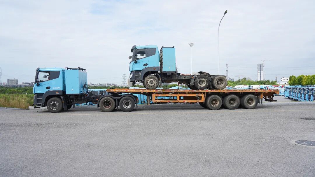 三一重卡推出江山430充电子母车和江山425换电子母车,是针对“满去空回”场景的高效物流解决方案。它们通过独特的组合设计,去程“两车满载”,回程“一车背一车”,在降低运营成本、提升运输效率方面表现突出。