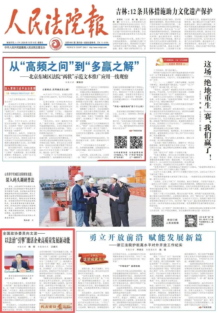 “随着全球化进程加快,越来越多民营企业参与全球竞争,涉外法律纠纷、国际贸易摩擦日益增多,海外维权难、法律风险大等问题凸显。”向文波建议,人民法院要加强涉外法治服务供给,提升涉外法律应对能力,搭建“一站式”出海支持平台,强化企业法律风险意识与维权保障,为企业“走出去”提供更加精准的司法服务和保障。