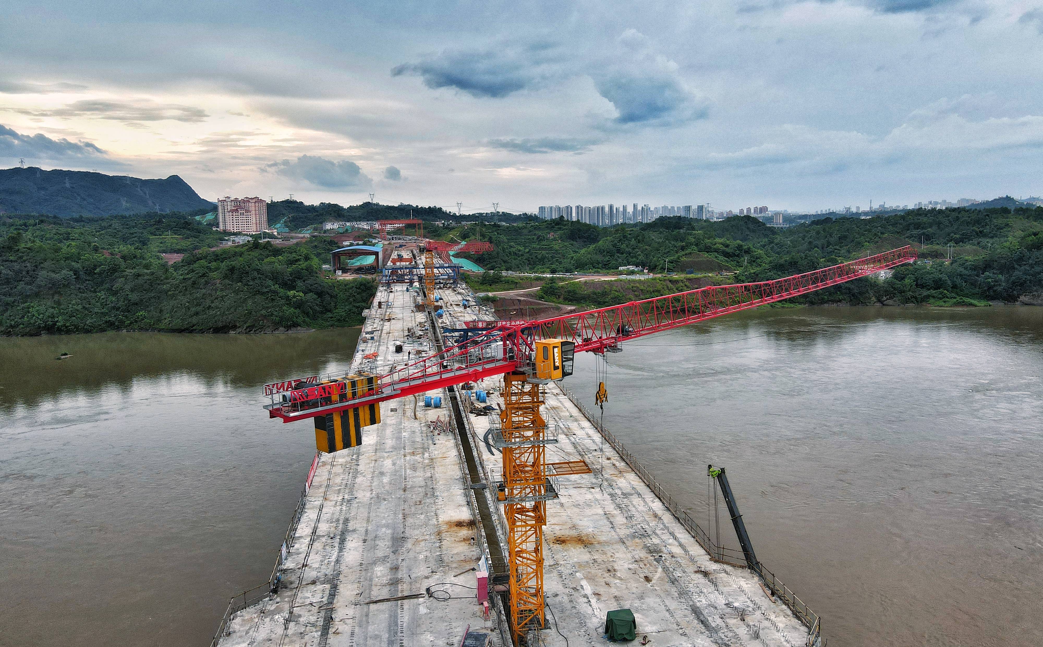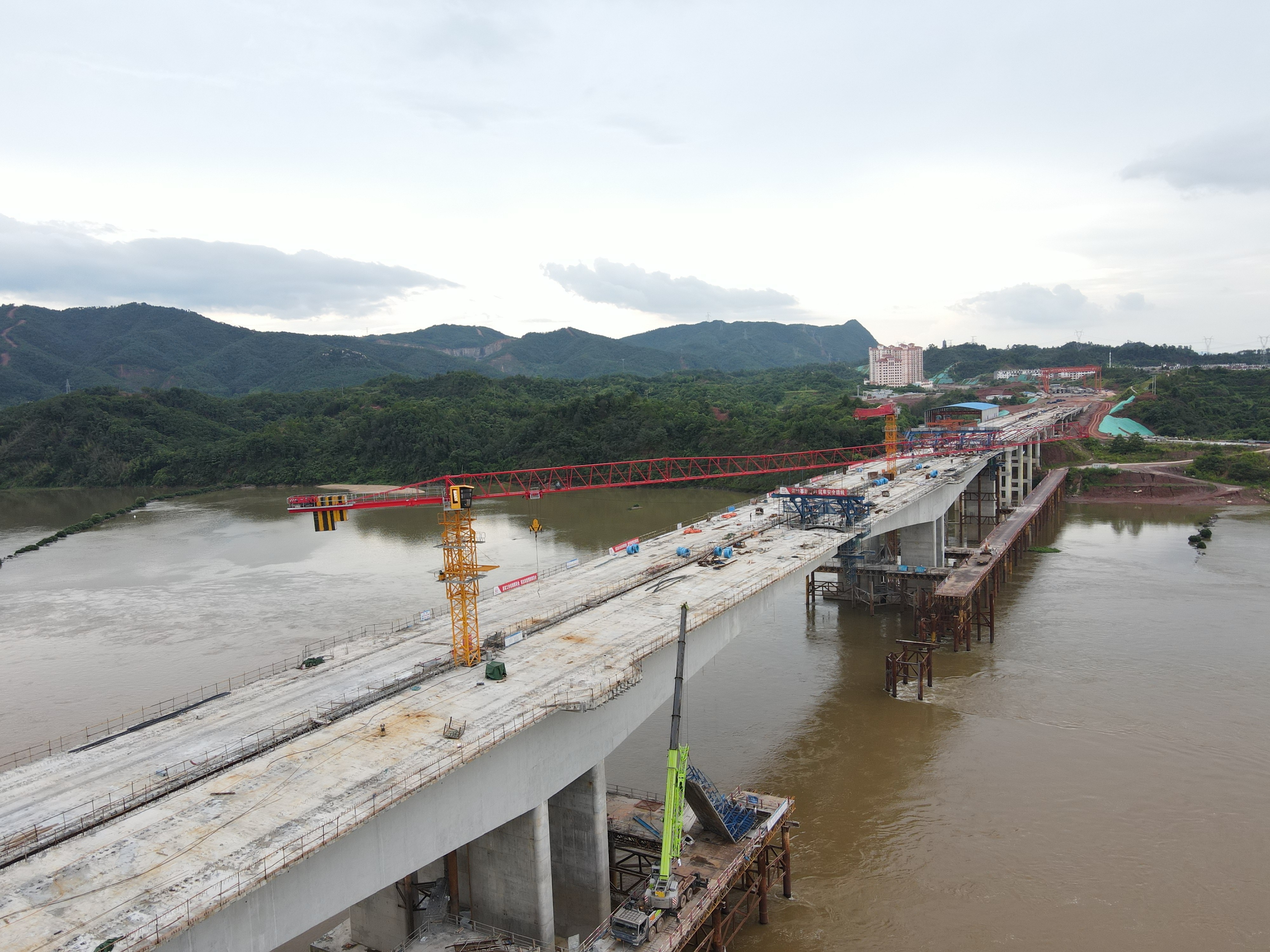 自2020年12月份开工以来,SFT160C2(T6518-10)平头塔机发挥稳定,项目快速推进,截至目前,已完成总工程量的80%。施工现场,工人们正在进行主桥合龙前的收尾工作。力争大桥在8月底合龙,全线在10月建成通车。