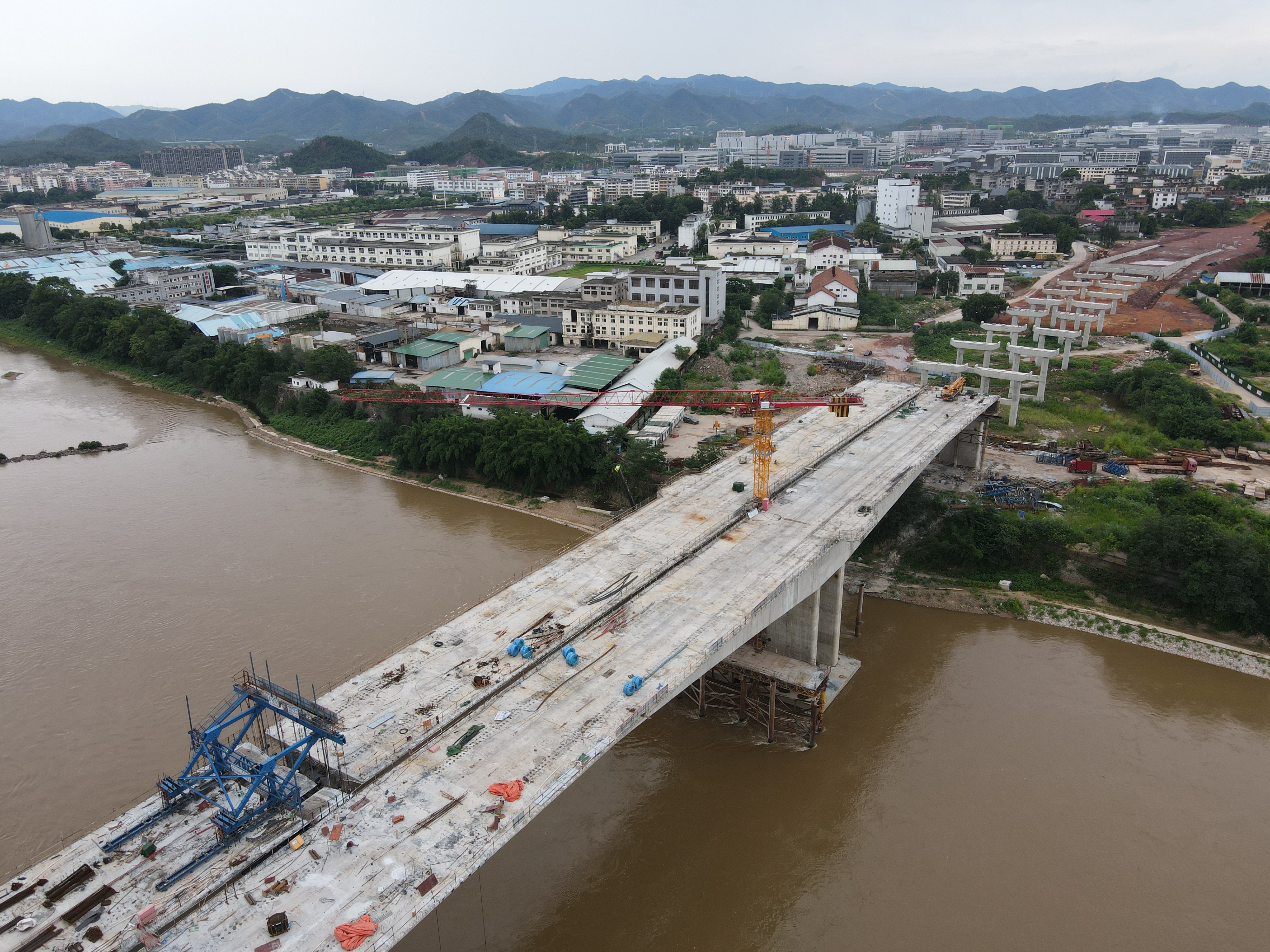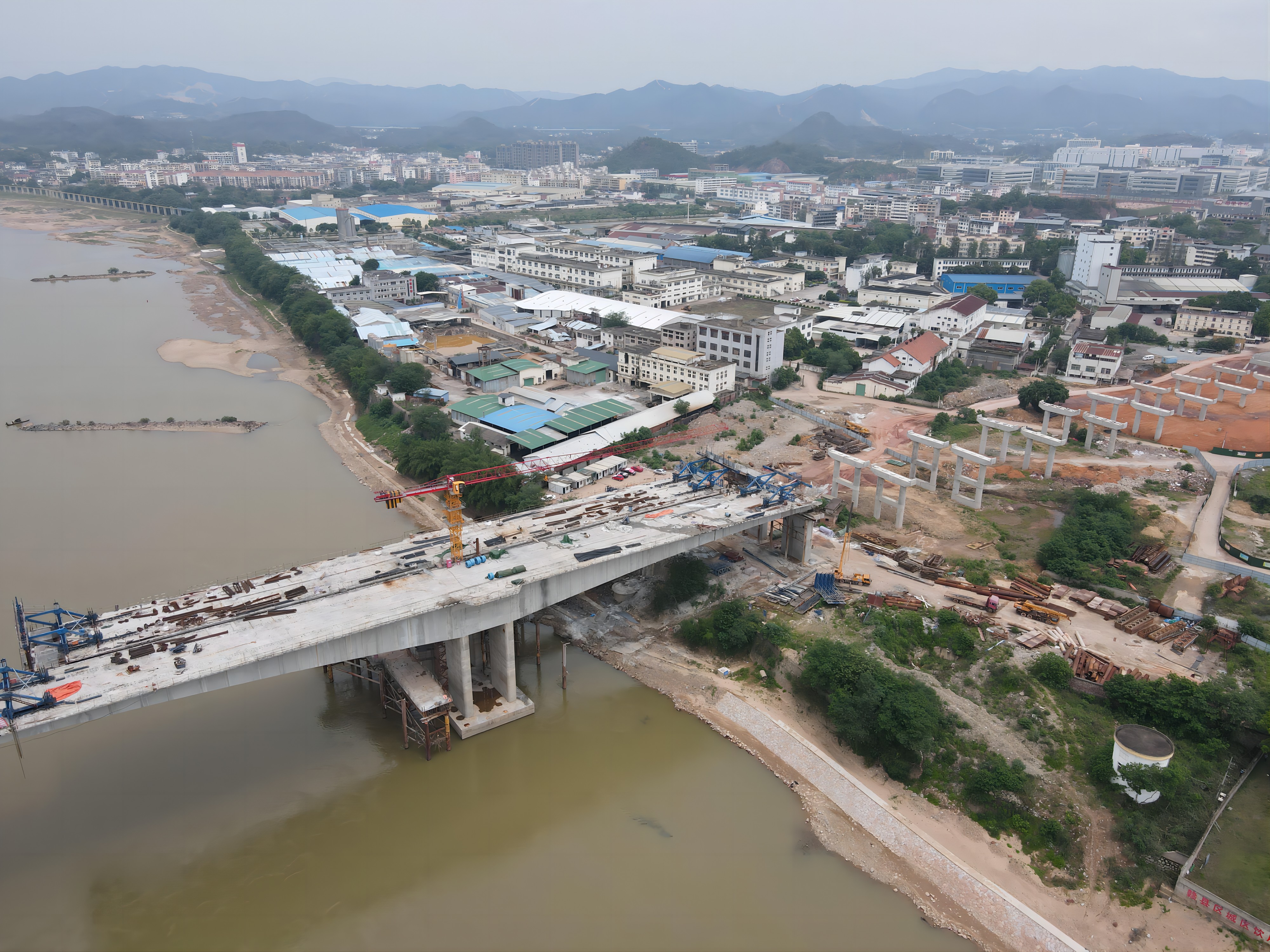 经过两年多的紧张施工,江西赣县义源新区汶潭大桥即将迎来主桥合龙。在这里,两台三一SFT160C2(T6518-10)平头塔机已在此矗立许久,单台设备施工时长达1500小时。