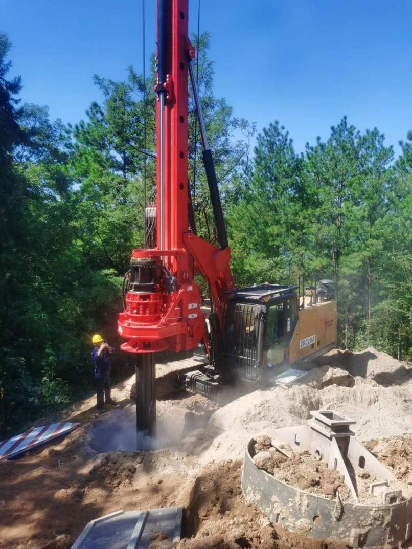 施工难点及解决方案:底部红砂岩的岩石强度较高、桩径较大,需要采用截齿筒钻入岩、分级扩孔钻进的方法。