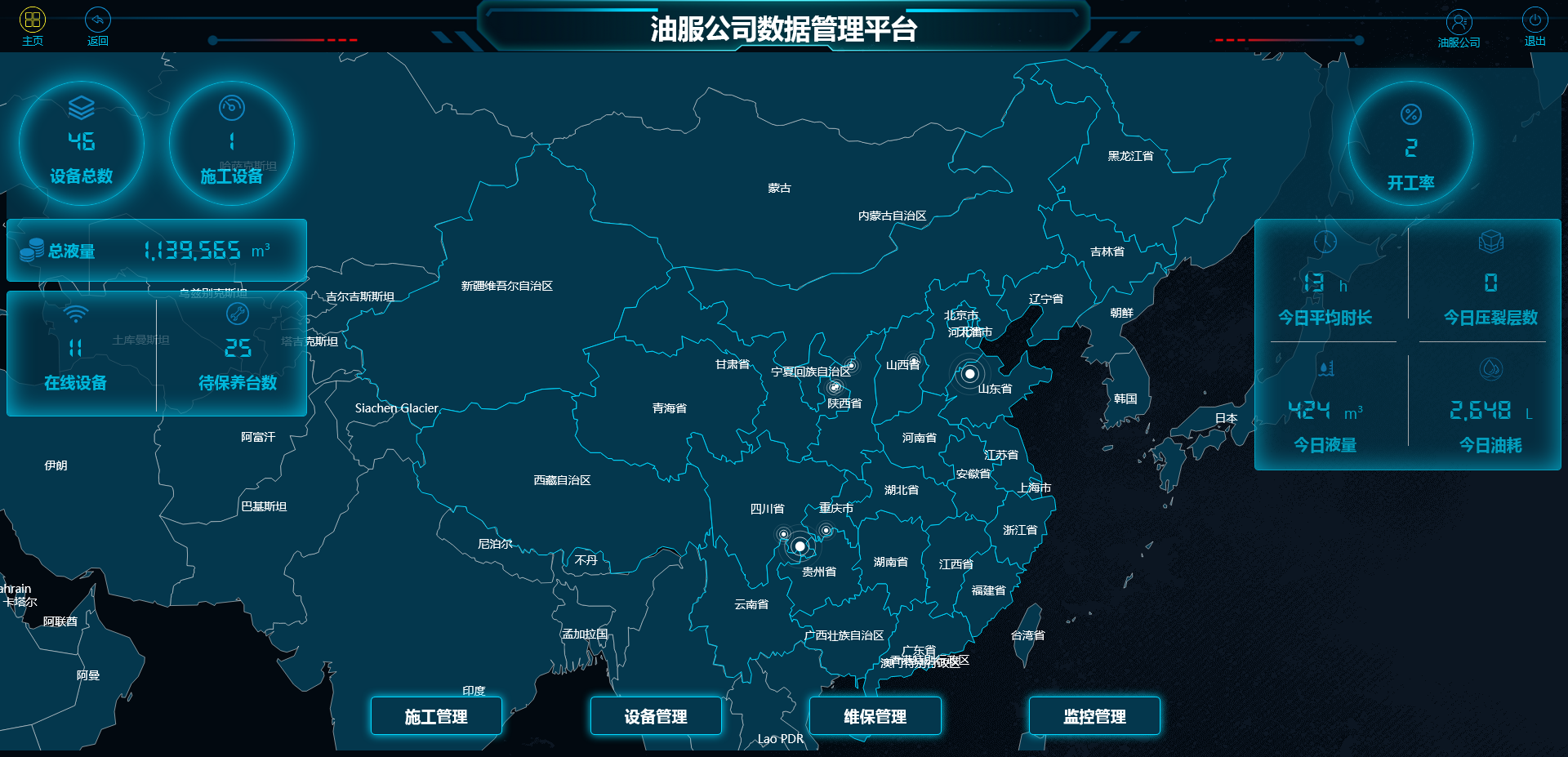 三是施工管理:施工管理可以查看客户施工曲线,包括开工率、工作时长、液量、油耗等。维保管理可以查看设备待保养信息与已保养信息,设备报警信息与已处理报警信息。客户可以查看施工曲线,并可以根据日、周、月进行切换选择,根据施工曲线掌握生产情况并作出调整。