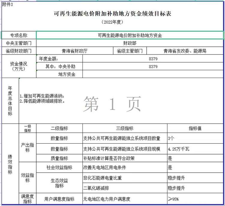 四、为保障资金安全,提高资金使用效率,电网企业应按年度对补贴资金申请使用等情况进行全面核查,必要时可聘请独立第三方。为深入贯彻落实《中共中央 国务院关于全面实施预算绩效管理的意见》,切实提高财政资金使用效益,请你单位在组织预算执行中对照绩效目标(附件3)做好绩效监控,确保年度绩效目标如期实现。同时,你单位应按规定及时上报绩效自评结果,绩效自评结果将作为分配预算资金的重要依据。