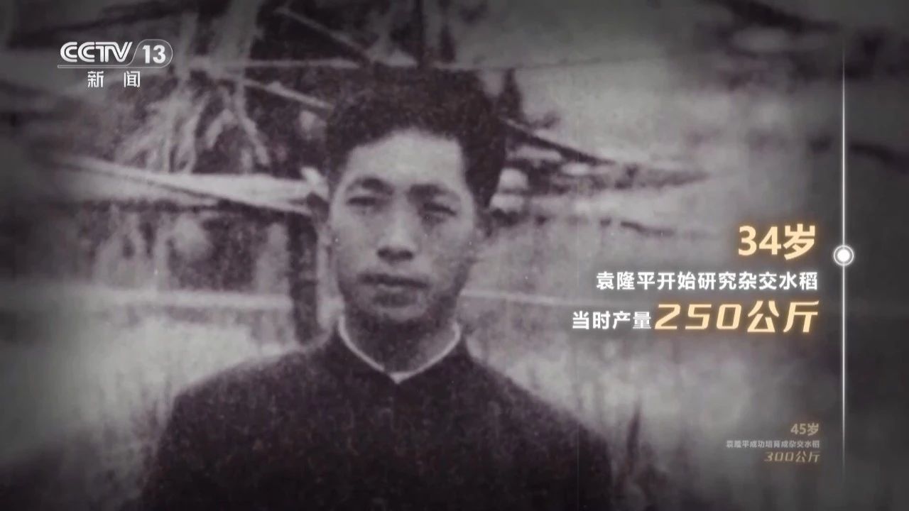 34岁,袁隆平开始研究杂交水稻,当时产量250公斤;